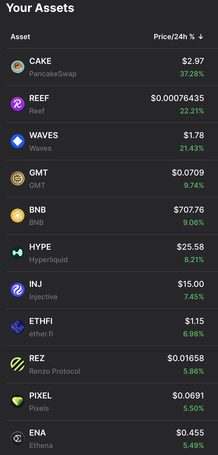 Фиксирую хаотичные пампы отдельных говнин на 25%+ за день в последнее время. Сперва USUAL, теперь CAKE. Киты проводят прощупывающие пампы, а значит, скоро начинаем альтсезон.
