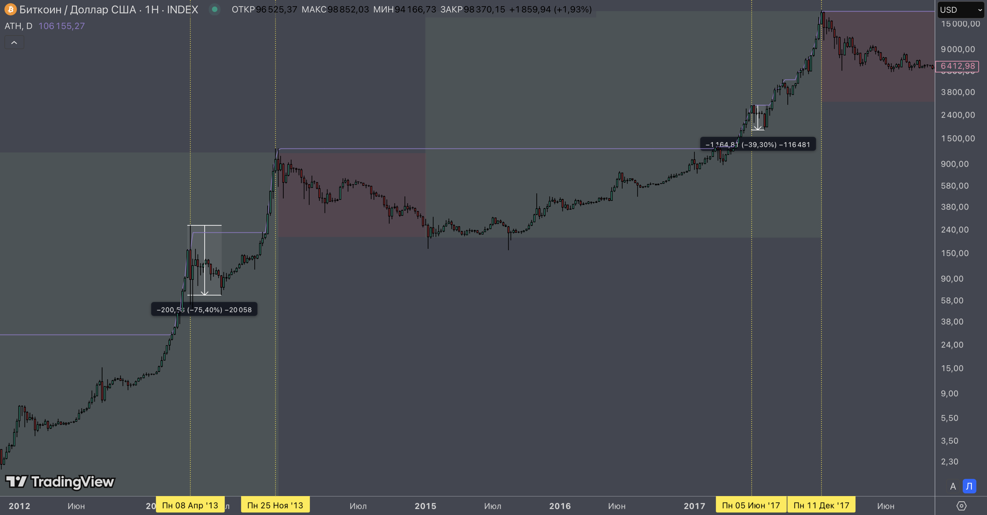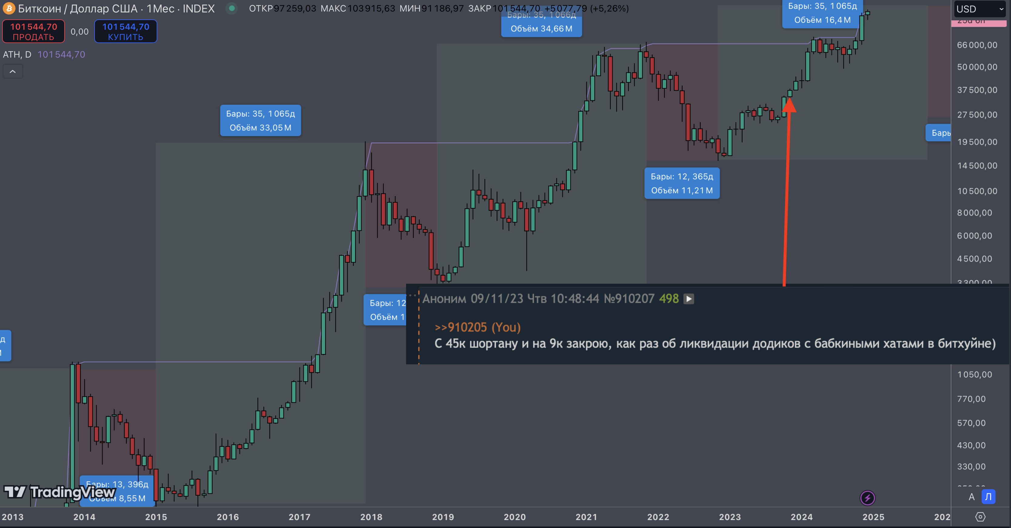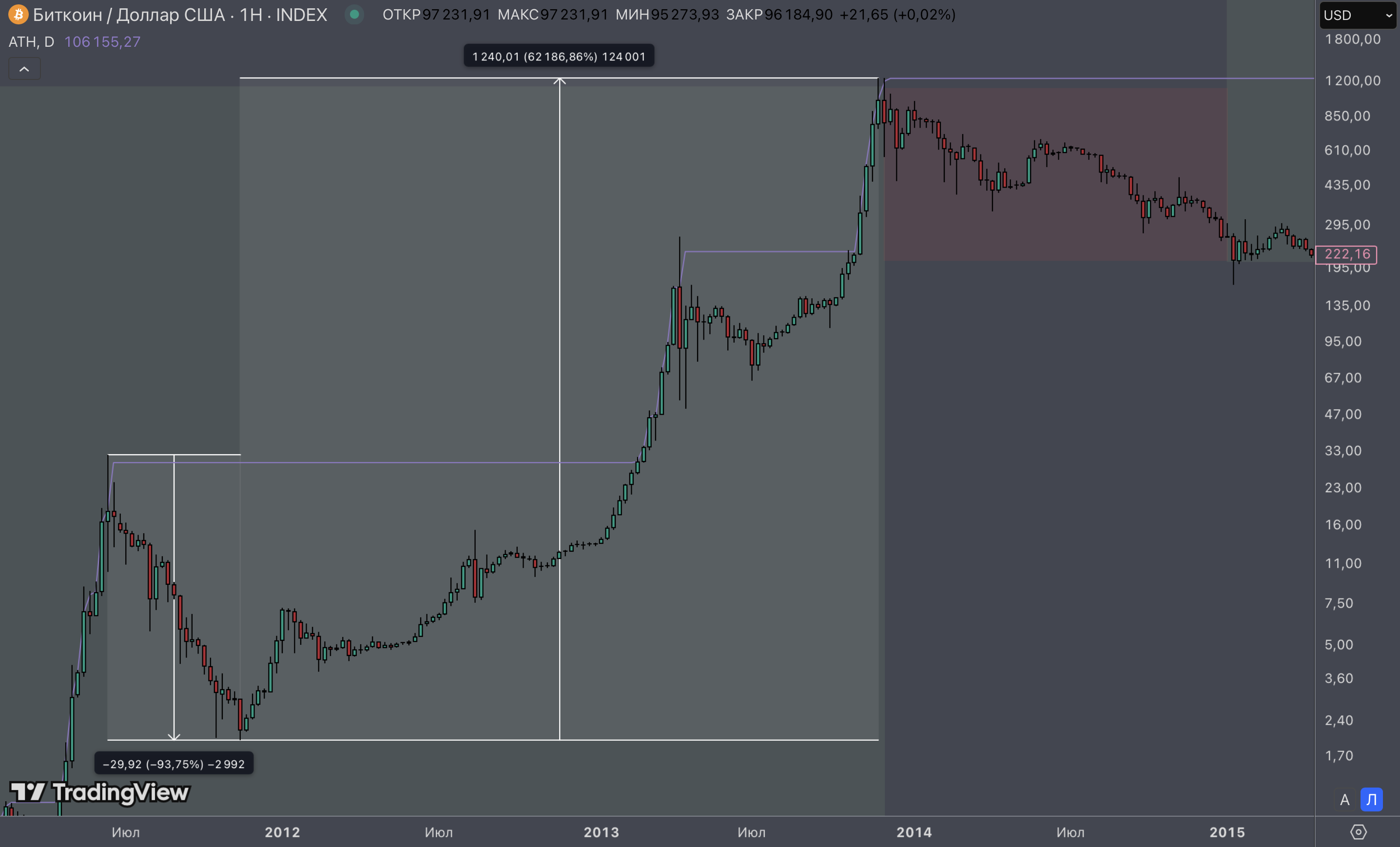 >>1231076 >лой в 2011 Дура, какой лой, это обычная коррекция внутри трёхлетней бычьей фазы четырёхлетнего цикла. Ты реально какой-то даун из тик-ток поколения, то свечи зачем-то пропускаешь при нанесении диапазонов дат, то не можешь увидеть коррекции внутри каждого цикла на росте.