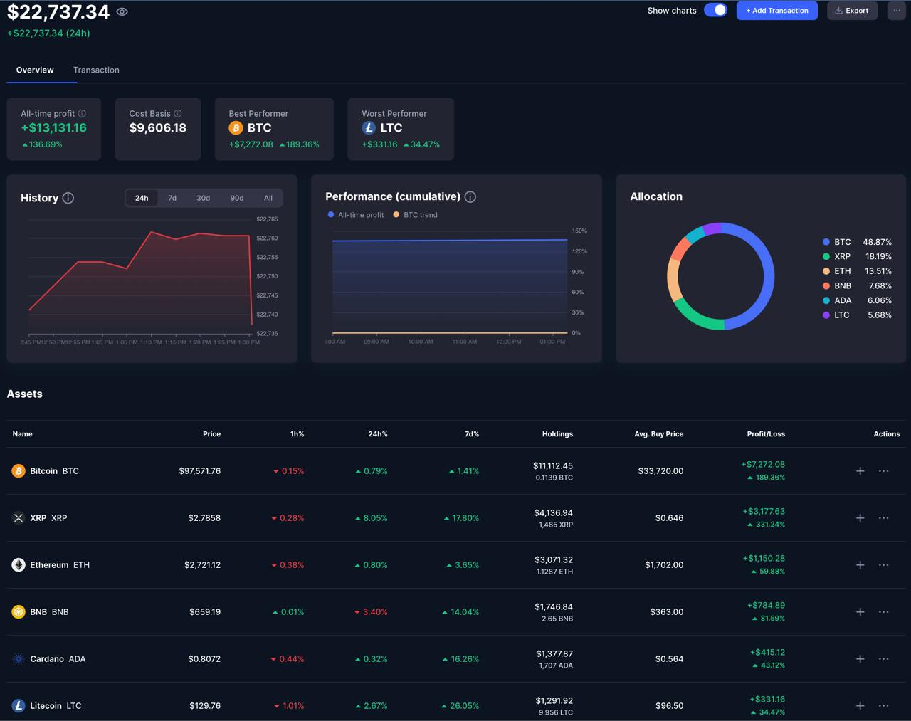 Суть - в усреднении; независимо от ситуации в рынке и цен - регулярно совершать закупки по своему плану, что мы и делали эти 4 года в рамках данной рубрики; сама пропорция была очень простая - 40% BTC, 20% ETH, 10% XRP, 10% BNB, 10% ADA, 10% LTC
