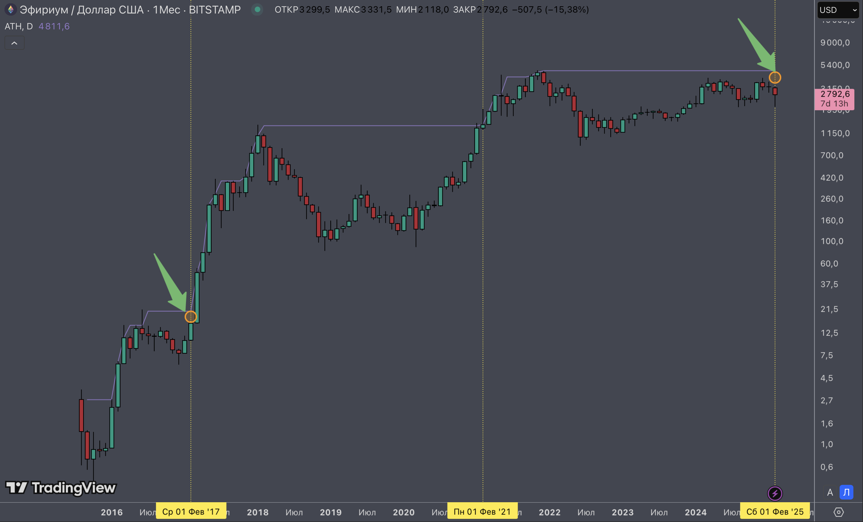 1 в 1. Февраль, находимся около прошлого АТХ. И даже в прошлом цикле, не смотря на залив ковидного бабла, эфир в феврале был задавлен под АТХ, хотя вылезал значительно выше.