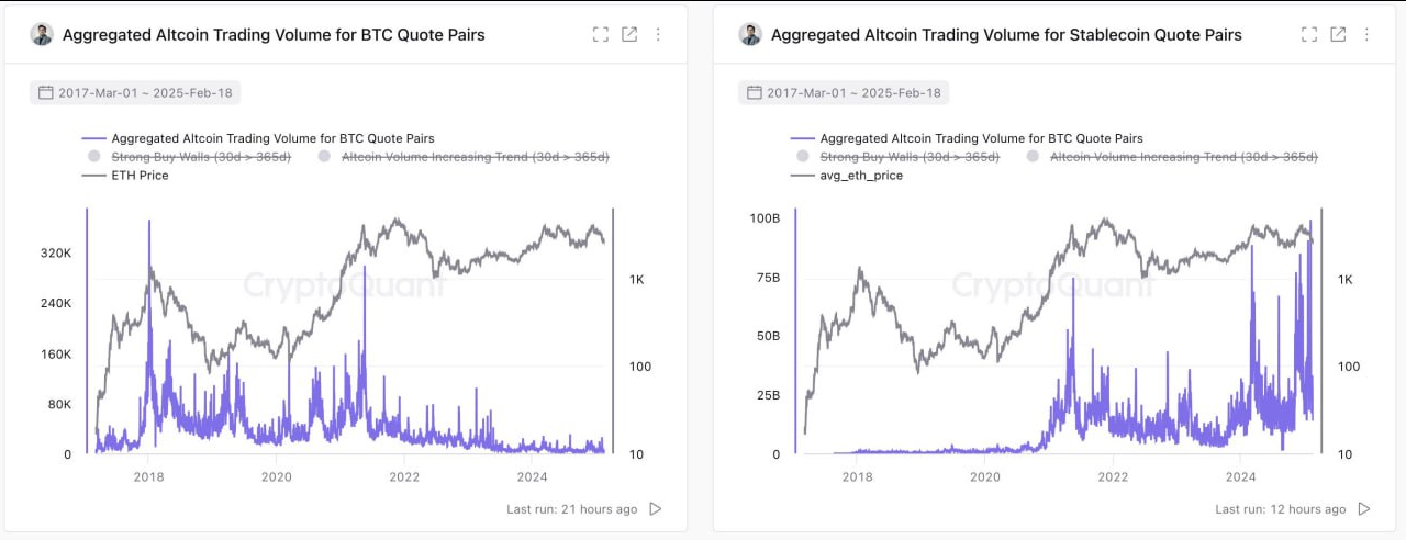 >В этом сезоне альткоинов только несколько монет набирают обороты. В отсутствие свежей ликвидности это похоже на PvP-борьбу за фиксированный пирог. Объем торгов показывает, что битвы становятся все ожесточеннее.