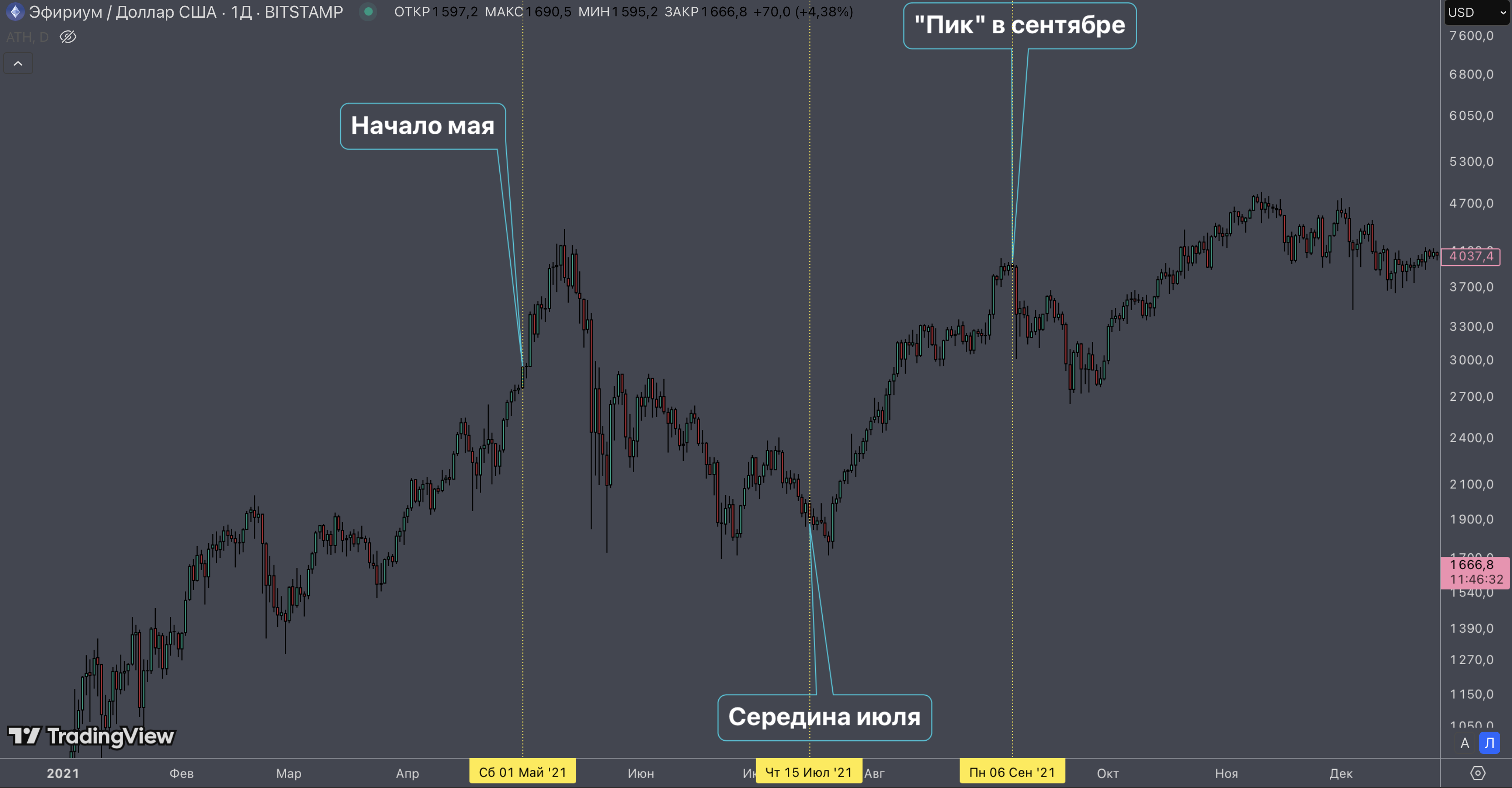 >>1264082 >Так а че с циклами Всё норм. > Ты же хотел в конце апреля или мая? не помню фиксировать часть Я ждал повторения цикла 2021 с ростом альты с декабря, но он, как оказалось, был исключением из-за ковидлы с заливом бабла, что сместило тайминги внутри цикла на несколько месяцев. Этот цикл идёт по сценарию 2017 года, соотвественно первая фиксация может быть не в апреле, а в мае-июне. > т.к. летом будет коррекция Если продолжим идти по 2017 году, то коррекция начнётся на первой-второй неделе июня. В любом случае, дно должно быть в середине июля, после чего разворот на последнюю волну роста этой бычки, до осени 2025.
