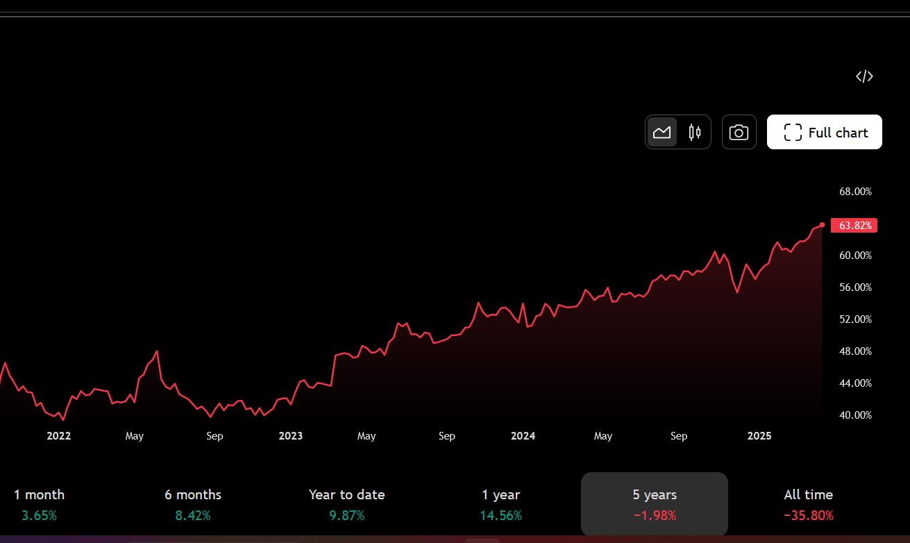 >>1265046 Ну смотри, ты продал в -70% и на фоне этого шизанулся, а я просто держу и докупаю, когда есть деньги. У тебя -70% зафиксированного убытка, у меня за месяц портфель с -58% поднялся до -30% при доминации больше 60%. Вот и думай.