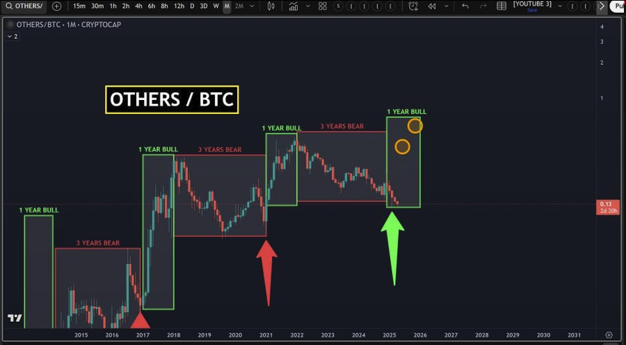 Эта диаграмма является ценным инструментом для определения благоприятных периодов для покупки или продажи альткоинов.