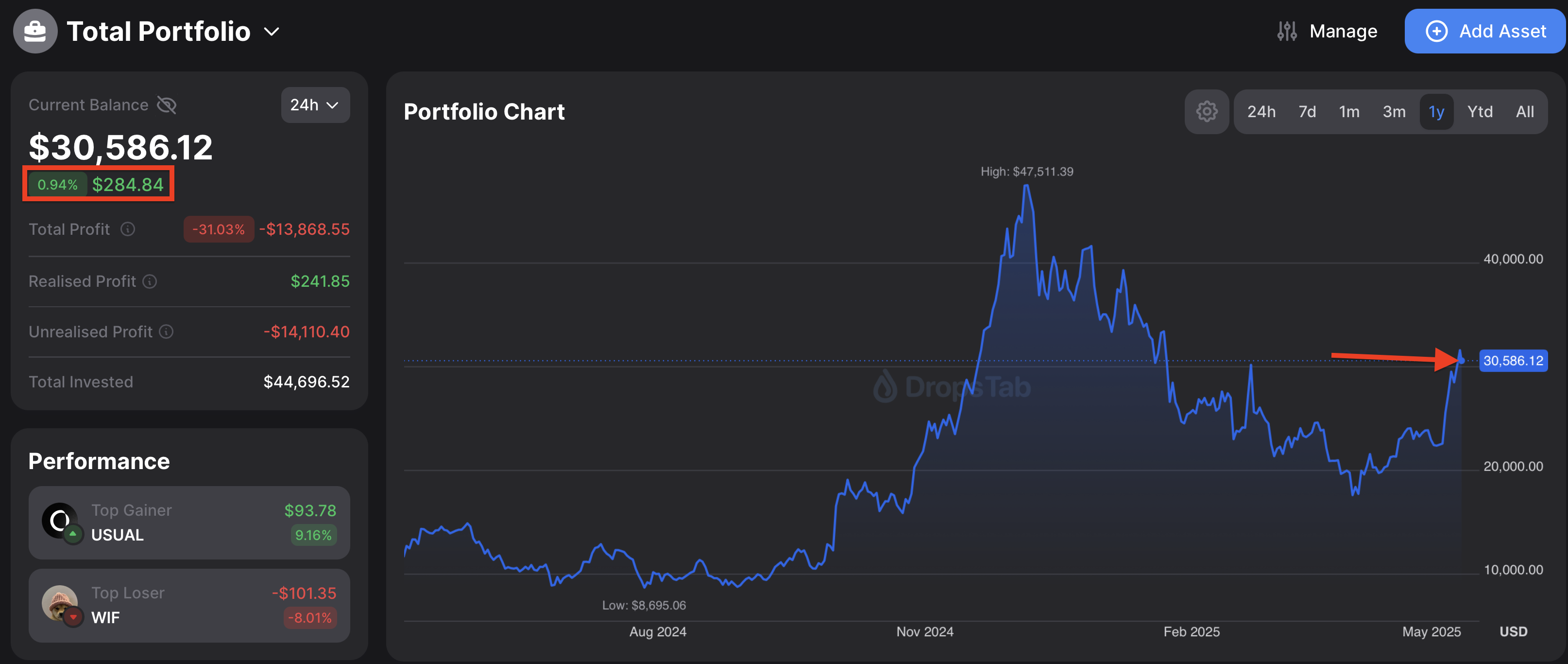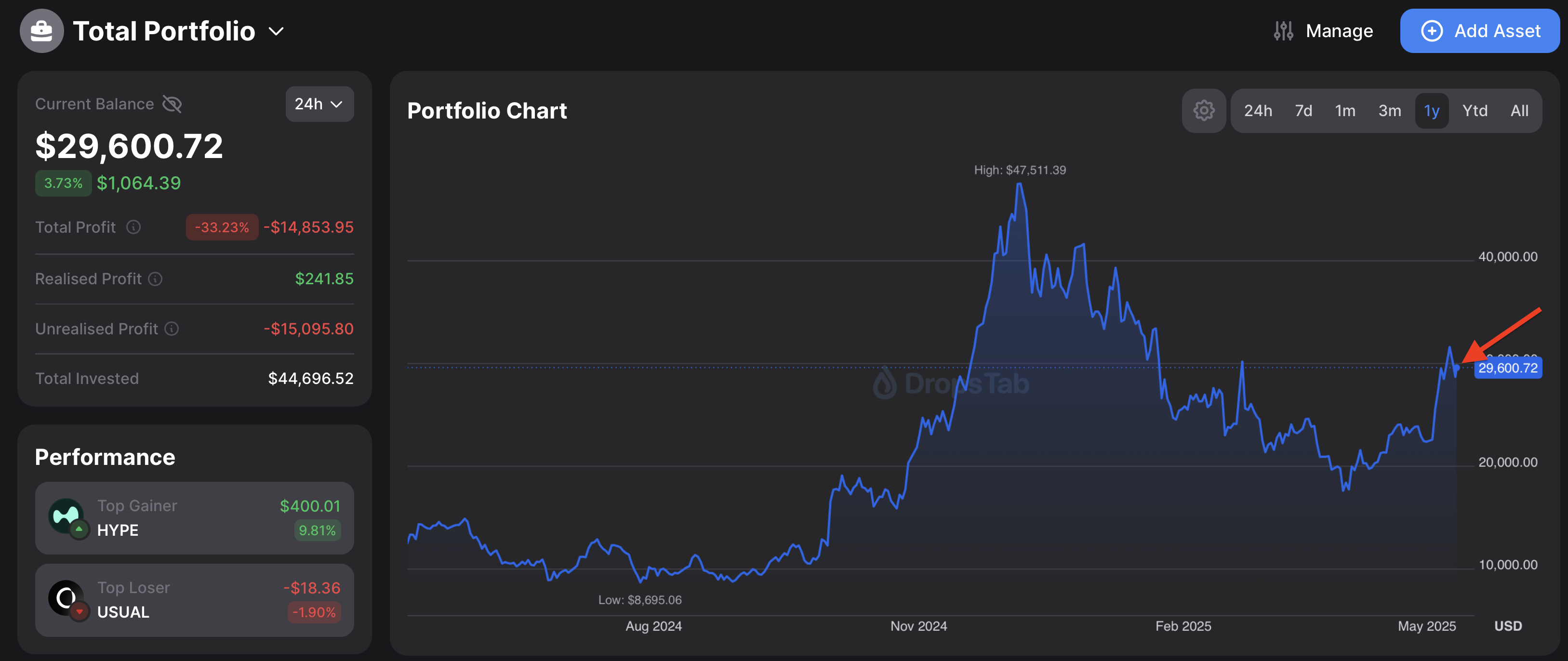 Если бы я в крипте не держал как еблан, смотря на корявый график как он падает и отрастает на протяжении 8 месяцев, забирая 30% за это время, а трейдил бы со стопом 1% иногда усредняясь (редко), то получил бы с 21 апреля по 2 мая 25.7%. Если я на протяжении года буду придерживаться этой стратегии, мой доход составит больше 250%, что легко позволит взять квартиру без ипотеки. Вывод - инвестиции хуйня, только трейдинг!