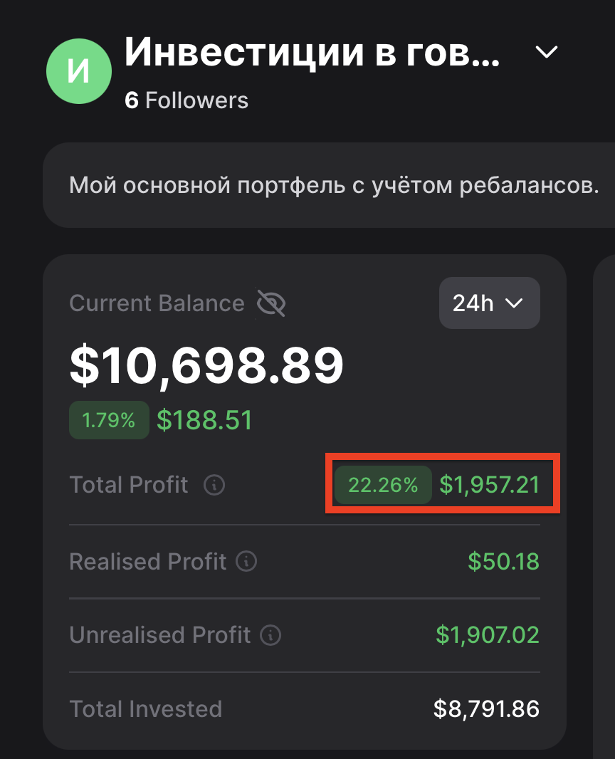 >>1264453 У меня тоже, кстати, -20%. Но я солано лудик тот еще. Так было бы вообще -16%. Лучше бы в альтхуйню эти 5к вкинул, какой же я еблан. В крипту вкатился повторно в ноябре. Не лудите, пацаны.