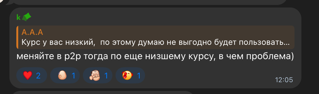 >Судя по всему, обменники с AML идут мимо, выглядит жутко. Да и без AML. Там не в этом риск, а в том что тебе на карту зайдут грязные деньги, т.к. они могут заявки исполнять по треугольникам. На P2P это можно отфильтровать хотя бы. Но я его не тебе кидал, а просто как еще один способ оплаты по QR.
