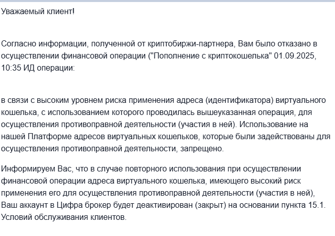Еще хотел бы спросить про эту Цифру-Маркетс: если у них покупать крипту, она случайно не будет считаться окрашенной в виду белорусской юрисдикции с тчк. зрения Bybit/Binance/Амлбота? Потому что в посте, который скинул анон выше https://t.me/ciframarkets/124 постремались даже выводить на Цифру.
