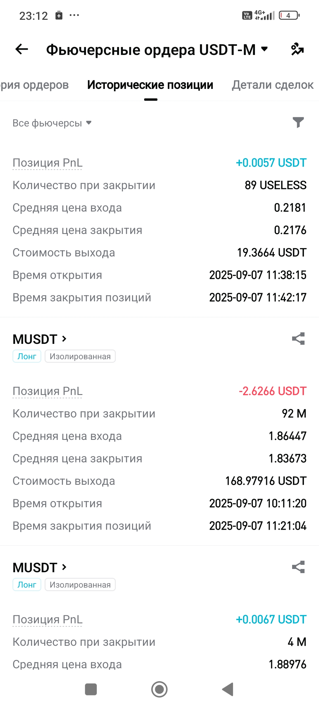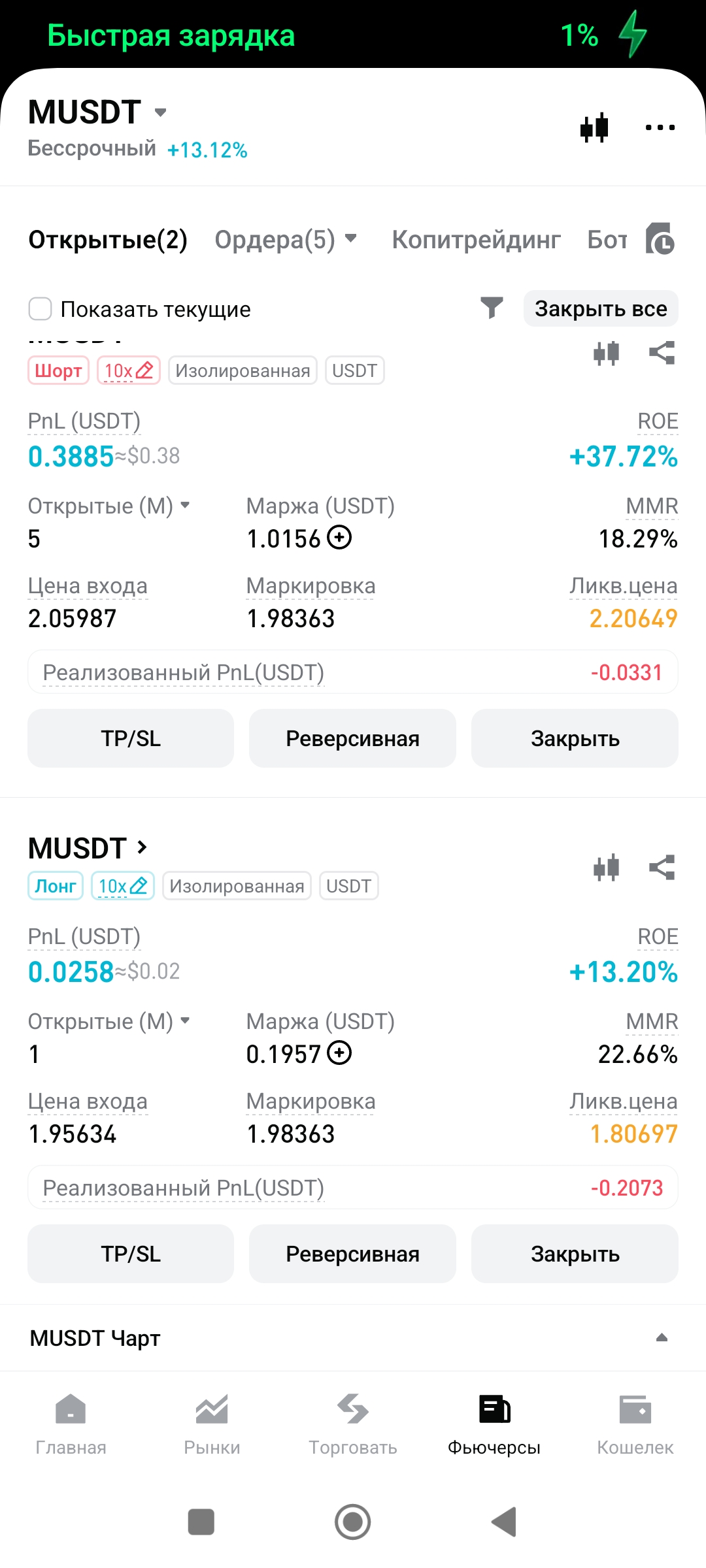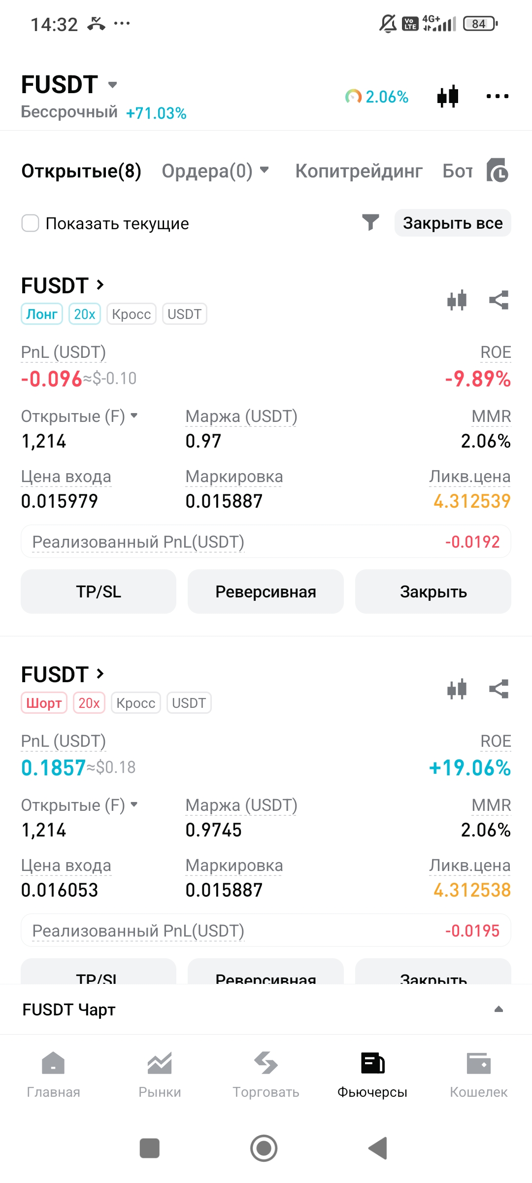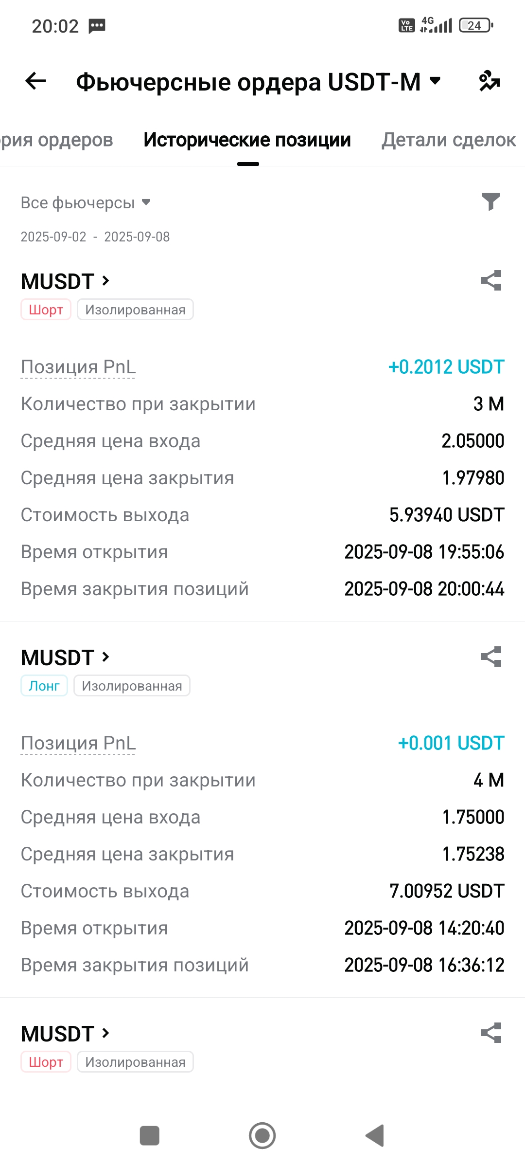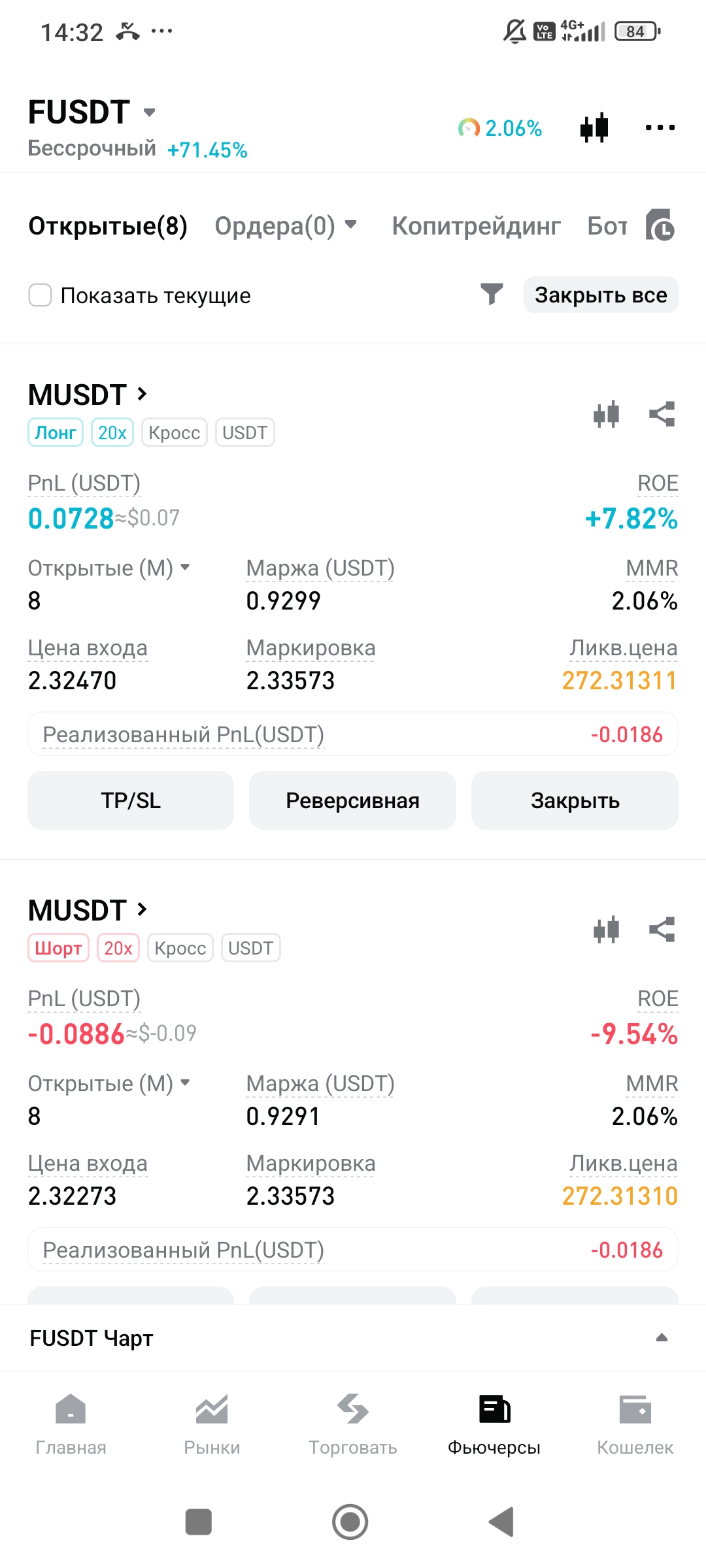 Проблема 50 плеча на F/USDT - сложно слишком усреднить, почти игра в угадайку. На 10 я бы это делал без тряски и выгреб полтинник, а так сделал всего 30 долларов (хотя по началу мог выйти в 70 или 90, не помню, ни чем не рискуя).