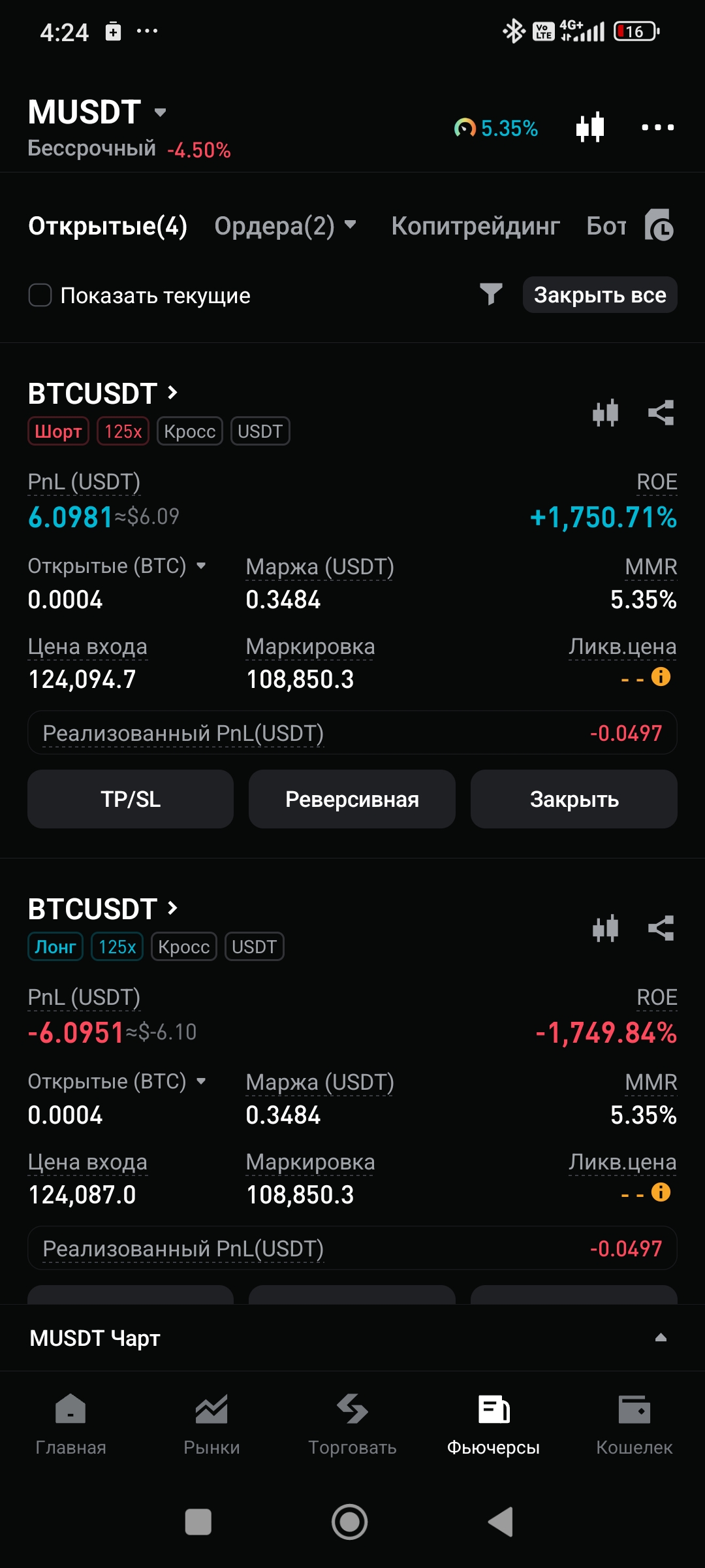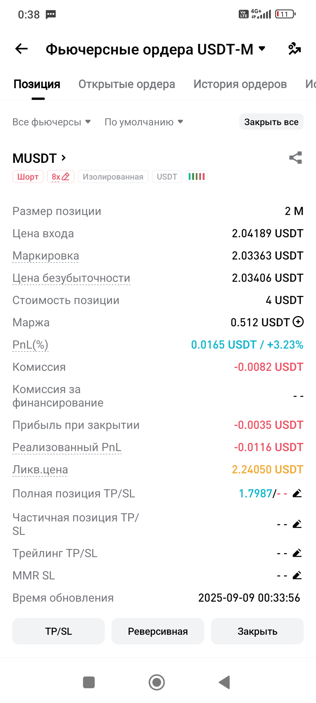 Вот так зашла, уменьшил позиции до минимально возможных, комсу отбил и лягу спать сейчас. Ставки равны, мне похуй. Как будут на каком-либо из ордеров сотни процентов, подумаю, чë с этим делать. Ждать тысячи процентов или по чутка уже скрести в копилку.