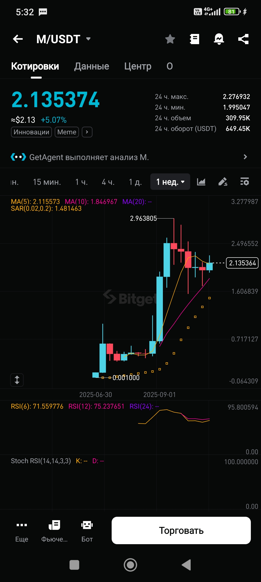 Прибавил ещё 4+%, но бля, такими темпами до сотки далеко. За неделю 11 баксов всего наторговал - это + шорту, на котором в первый день получилось 17 баксов, я его ебанул почти на полдепозита тогда, у меня ведь всего 24 бакса было, когда я начал эту серию ëбки рынка. Ну я был уверен, что не въебу. Это единичное хайповое событие было, они устроили карнавал с конкурсом костюмов мемов и за несколько часов мемкор взлетел на тест АТХ (я ровно так и думал накануне). Заскочил хорошо, на 2,9 - почти пик, но потом добавлял шорт, уже ниже, средняя цена продажи стала тогда 2,77. Ладно, пойдëт. Но шпиль я даже словил). Снова. Теперь надо словить нижний шпиль. Но я, как обычно, могу проспать. Х.з., наставить лимиток куда-то в сторону -50% или -90%, а вдруг мне повезëт. Бля, но я в это не верю, что данная монета ëбнется -90%. Значит, надо ставить. Веруны проëбывают. И ещё поставлю шорты, начиная с 2,85.