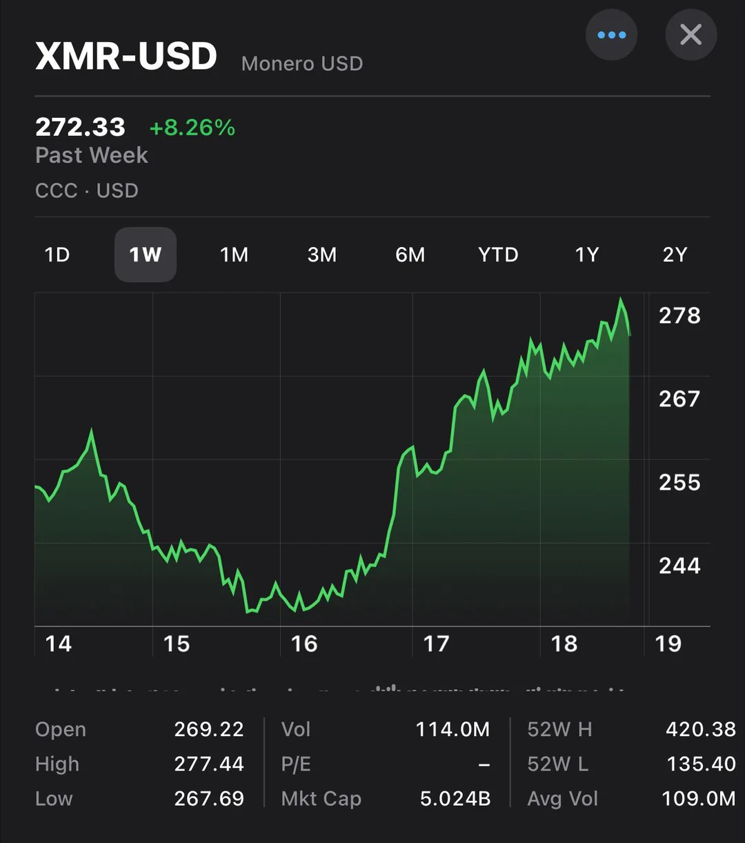 Регуляторная атака на конкурентов: Биржи и сервисы, такие как Binance, под давлением регуляторов уже delist или ограничивают поддержку других приватных монет, таких как Zcash (ZEC). Monero, как самый известный и устойчивый к анализу приватный актив, может стать основным бенефициаром, так как спрос на приватность никуда не денется, а каналов для его удовлетворения станет меньше.