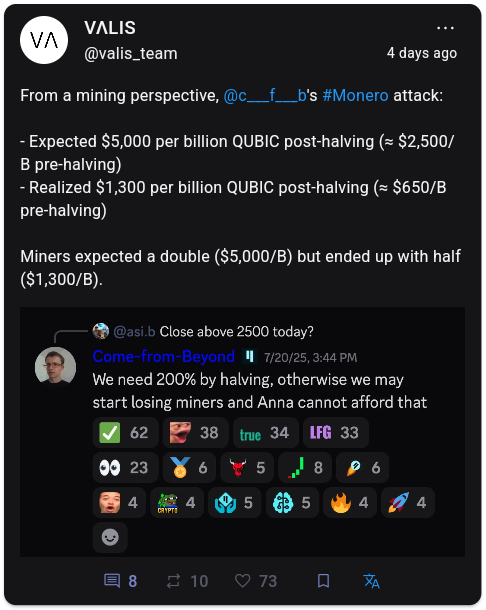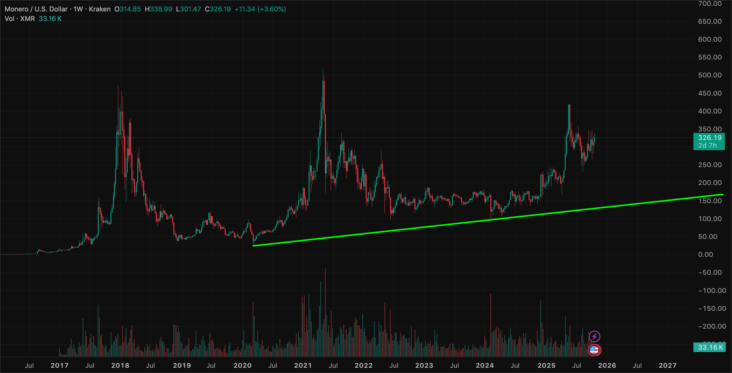 Мне кажется монера имеет шансы взлететь только если будет нормальная ликвидность доступная для анонимной покупки, чтоб условный плохой дядя смог взять и залить туда своё сомнительное бабло. Но единственный способ сейчас купить много XMR это цексы которые соблюдают AML/KYC, никто туда серое бабло не понесёт. Даже разного рода нарики не понесут потому что их абсолютно не парит анонимность их покупок.