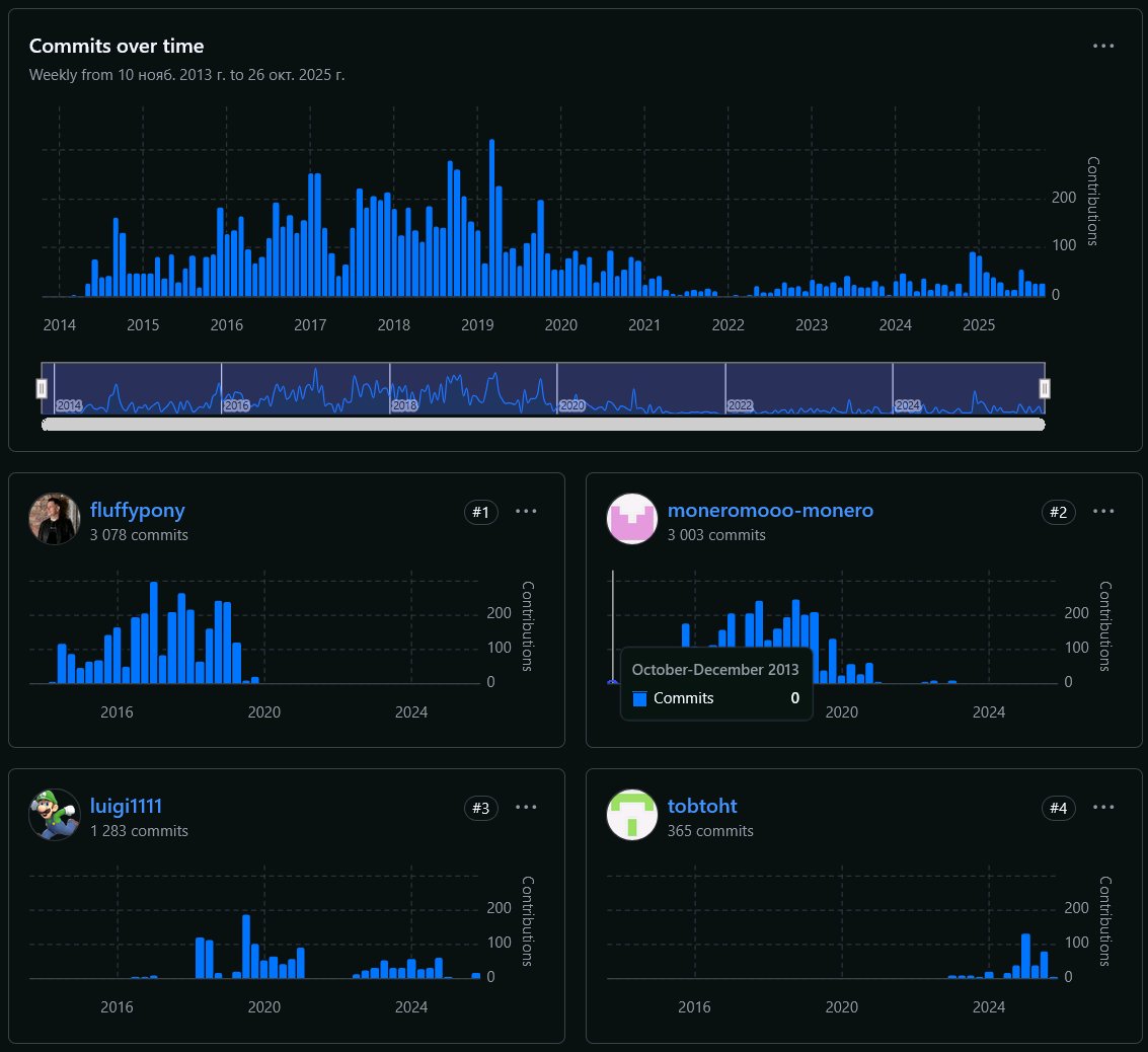 >>1308246 флаффипони и луиджи это менеджеры, хуй знает что они там накоммитили, они вообще не разработчики, не программисты и не криптографы, а пиздежа от них дохуя, вот такой график и получается.
