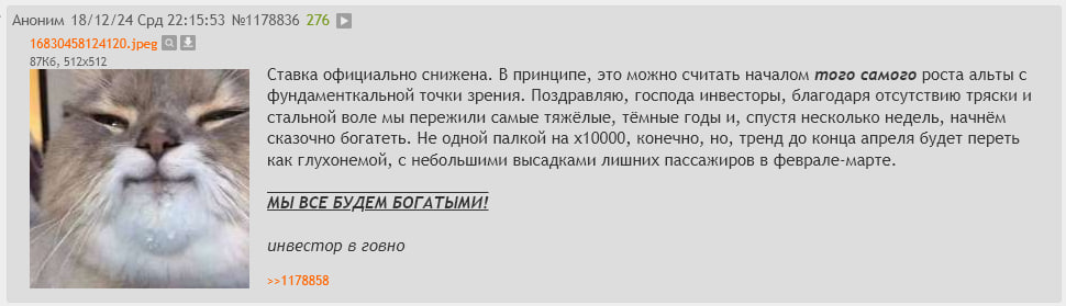 У человека был реальный шанс изменить свою жизнь и разбогатеть, но он предпочел отнести все свои деньги проплаченным говорящим головам из телеграма... Земля говном, теперь даже отыгрываться не на что...