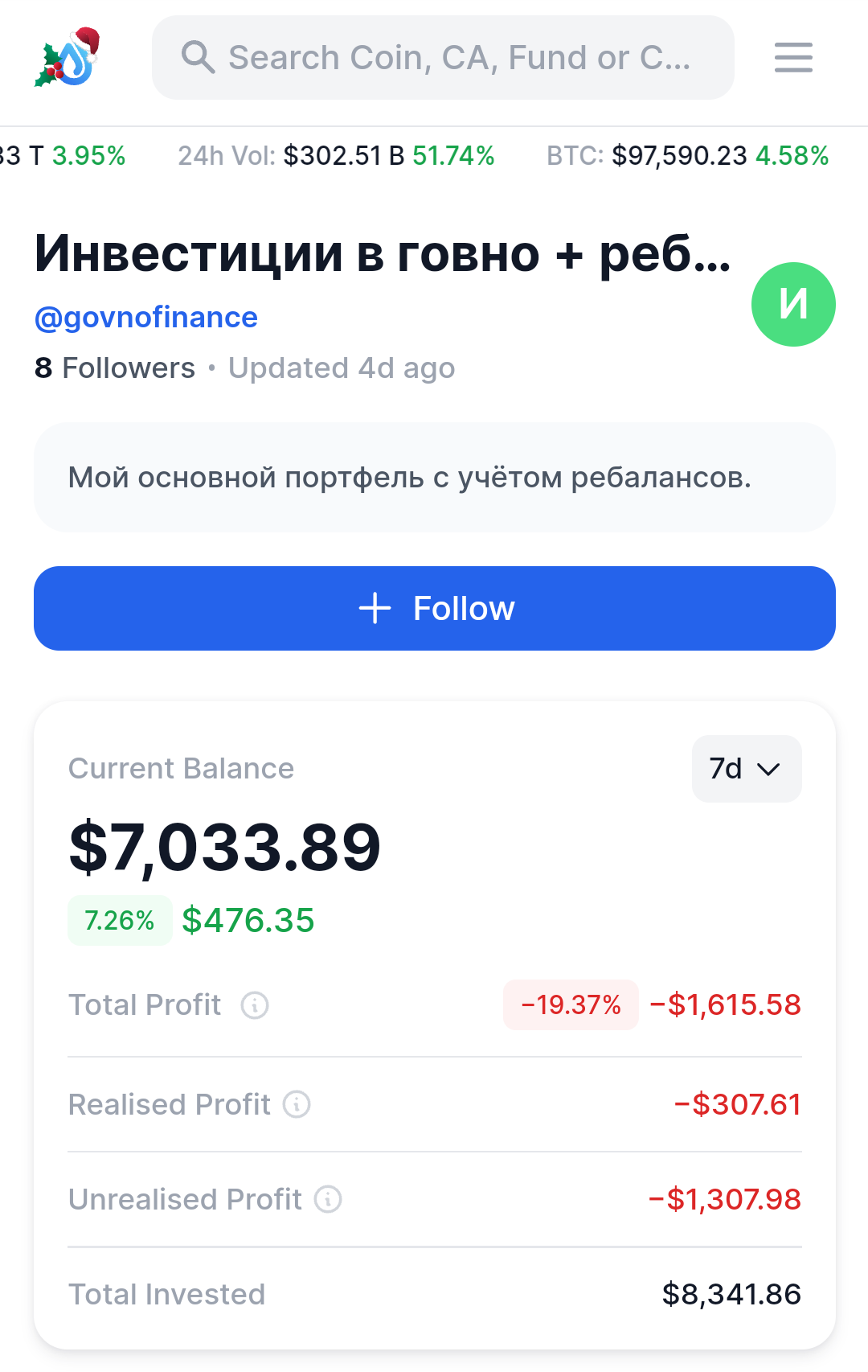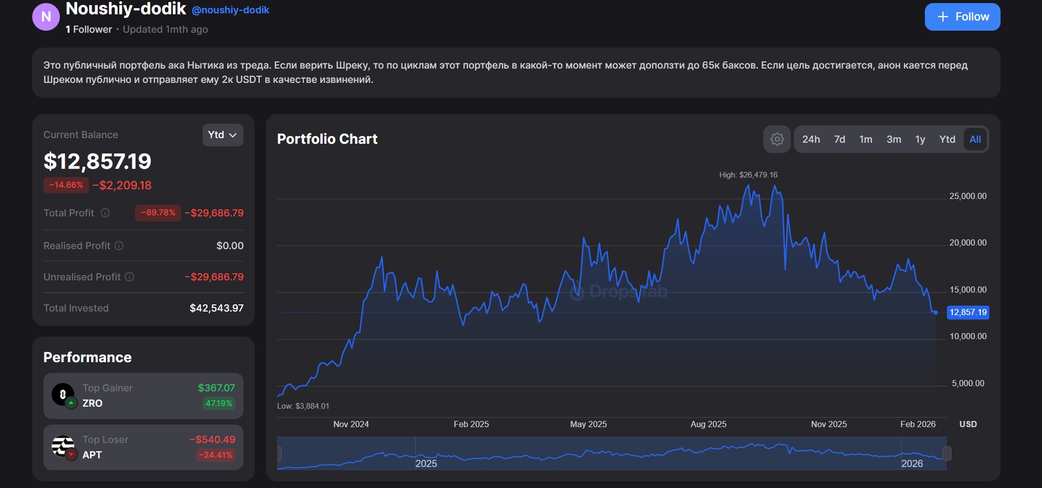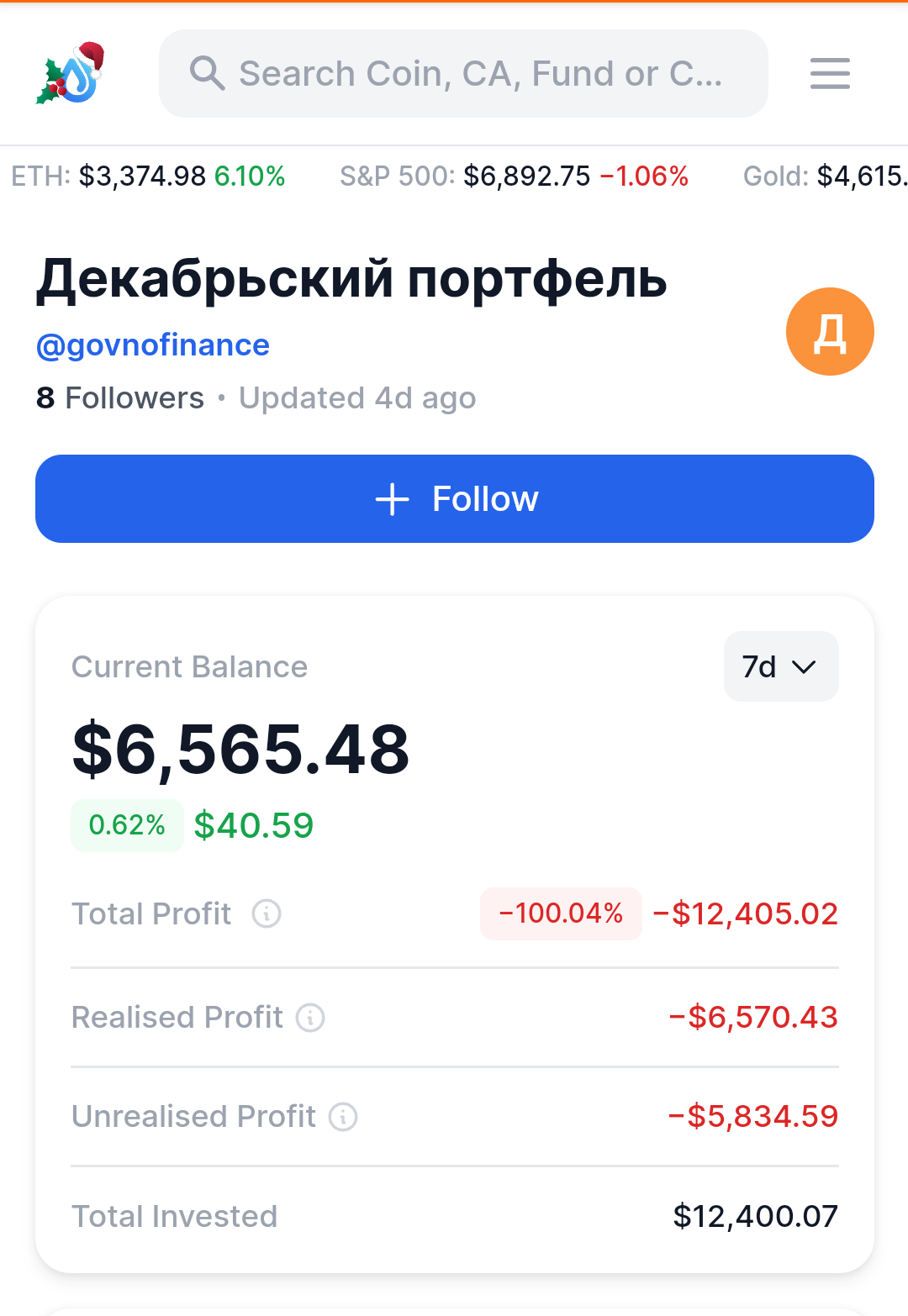 Есть два спора, на 500 ЮСДТ и 2к ЮСДТ. По первому спору ожидается доминация деда ≤ 45% И капитализация OTHERS 1 трюлик. По второму спору портфель Ссыкун-куна до конца цикла (ноябрь-декабрь 2025) должен достичь 65к, ссылка на его портфель ниже, фоловьтесь.