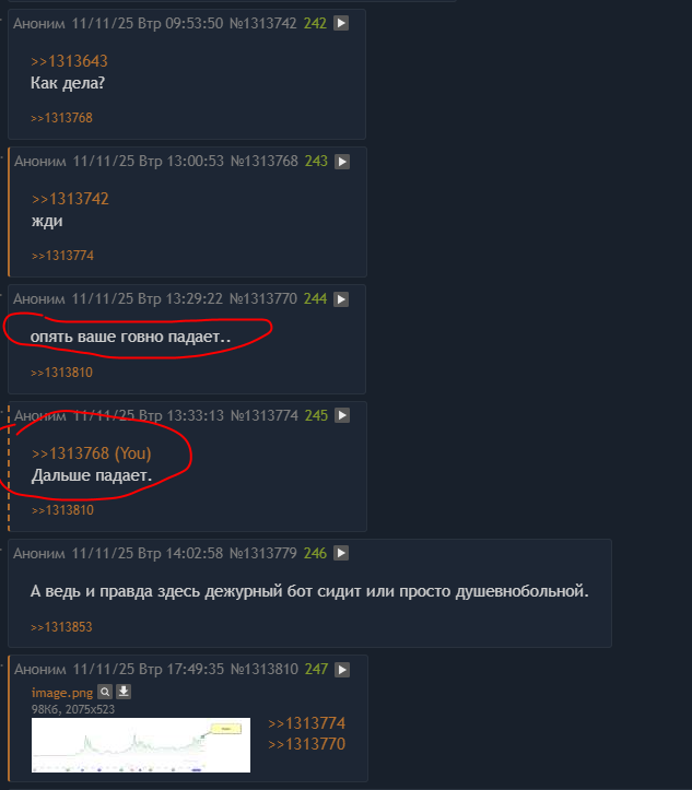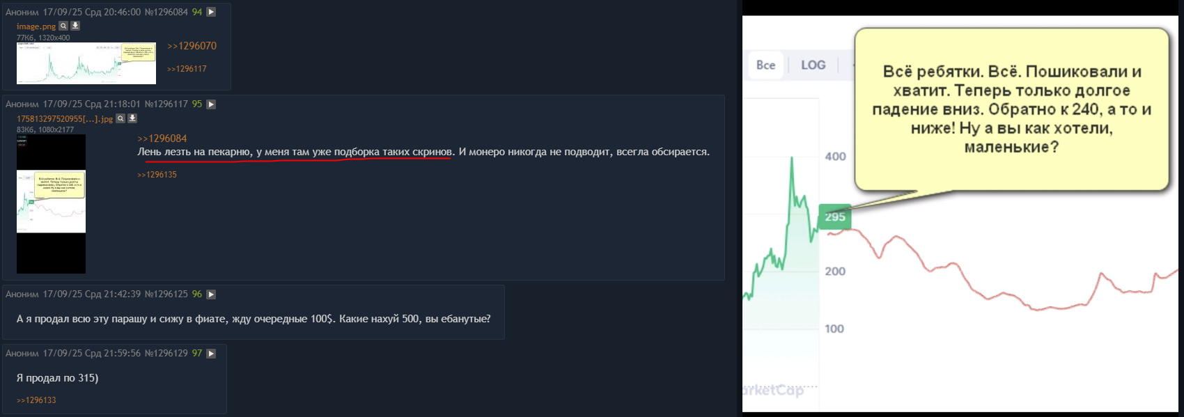 >>1332934 >как вы усирались, что говнеро после коррекции будет ходить в диапазоне 500-600 Покажи такое сообщение? Я писал только, что по 200-300 будем болтаться. Что и происходит.
