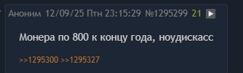 >>1295299 → >Монера по 800 к концу года, ноудискасс Чуть-чуть ошибся. 799-801 было, в зависимости от биржи. И не к концу году, а к середине января. Оптимистичные прогнозы хорошо работаю на монерке.