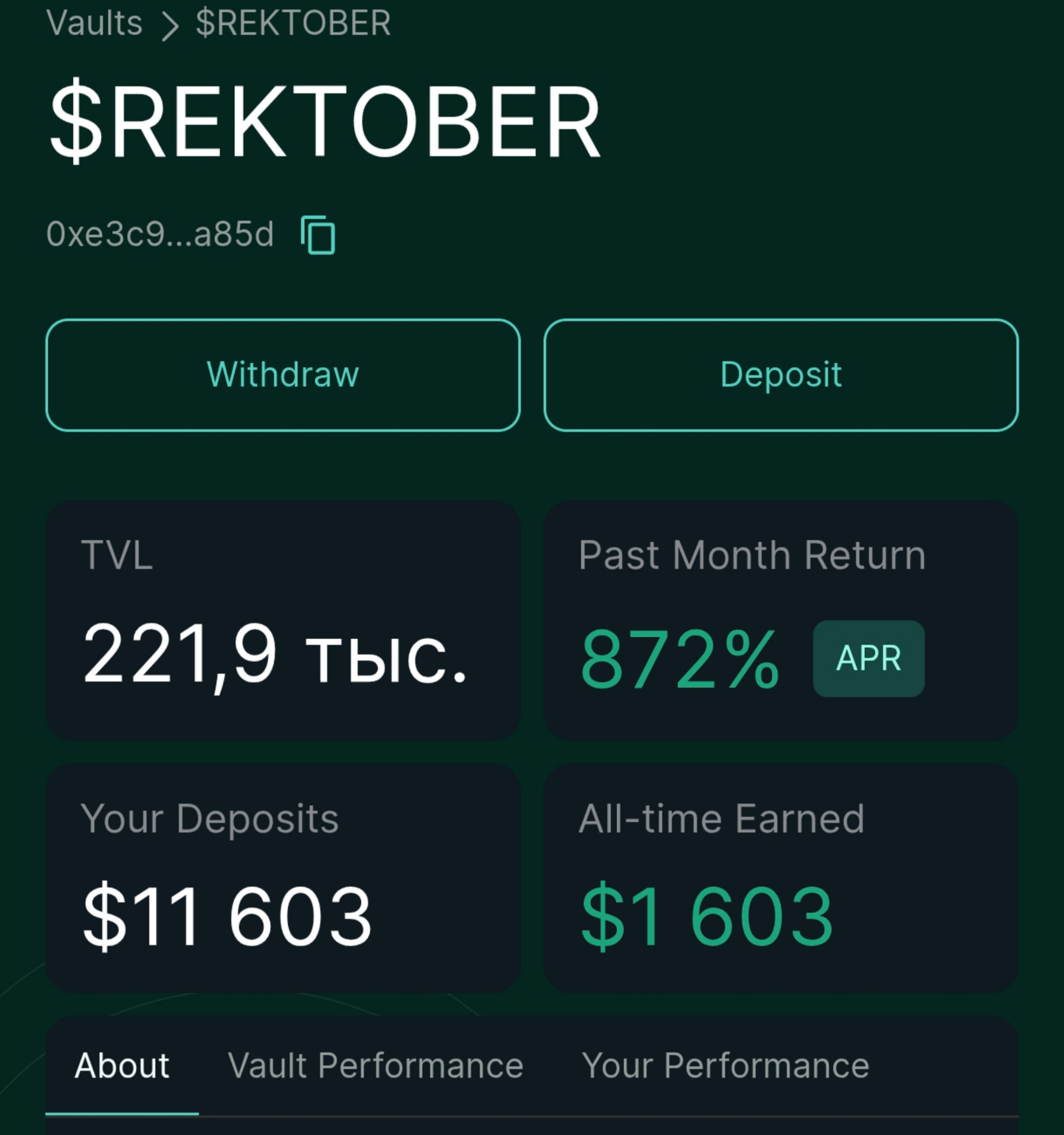 Op на связи, прошло около недели с додепа, заработал первые 15к$, ради прикола десяточку закинул в хранилище какого-то лудика из твиттера, за ним интересно наблюдать. Ещё десяточку закинул на новенькую биржу NADO, буду фармить поинты, через годик посмотрим, вряд-ли конечно дадут столько же, сколько дал Hyperliquid, но на 5 fig можно рассчитывать, биржа сделана классно.