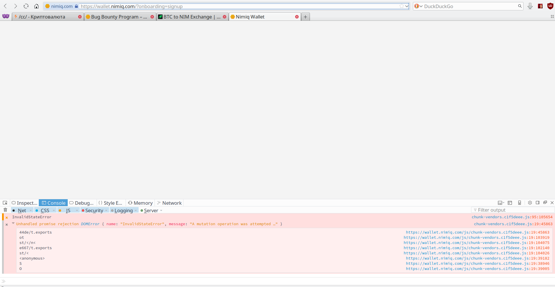 > первый браузерный блокчейн - то есть для работы с nimiq ничего кроме браузера не нужно, не надо скачивать никакие приложения и прочую лабуду. > вылизанный сайт и интерфейс готов к массовому внедрению, как с ним работать разберётся даже бабушка > хипстеры-разработчики используют самые наисвежайшие яваскриптовые нововведения других хипстеров, которые ещё не стандартизированы ECMAScript и не поддерживаются ничем, кроме самой последней версии Google Chrome > если использовать не самую последнюю версию Google Chrome то вместо кошелька будет белая страница