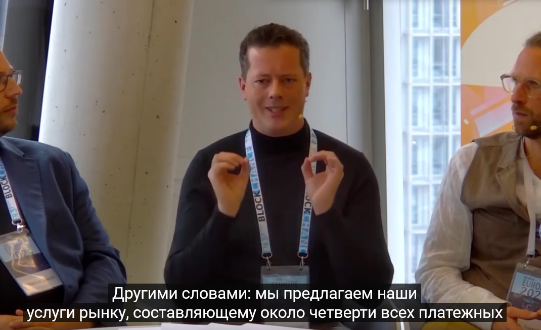 как я понял выступал представитель того самого банка, и если вкратце то он говорил про протокол OASIS, как он будет облегчать переводы из фиата в крипту, что мол через пару лет он видит как все на изи будут использовать криптовалюту для оплаты повсеместно, с точки зрения нормативно правовой базы уже почти всё обкашляли, а около четверти платёжных терминалов германии уже будут поддерживать такие платежи (надо просто обновить ПО)
