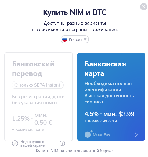 При попытке купить NIM через Changelly по Moonpay выходит ошибка. Покупаю за рубли. Под VPN то же самое. Третий день ситуация не меняется, браузеры пробовал разные. Чяднт?