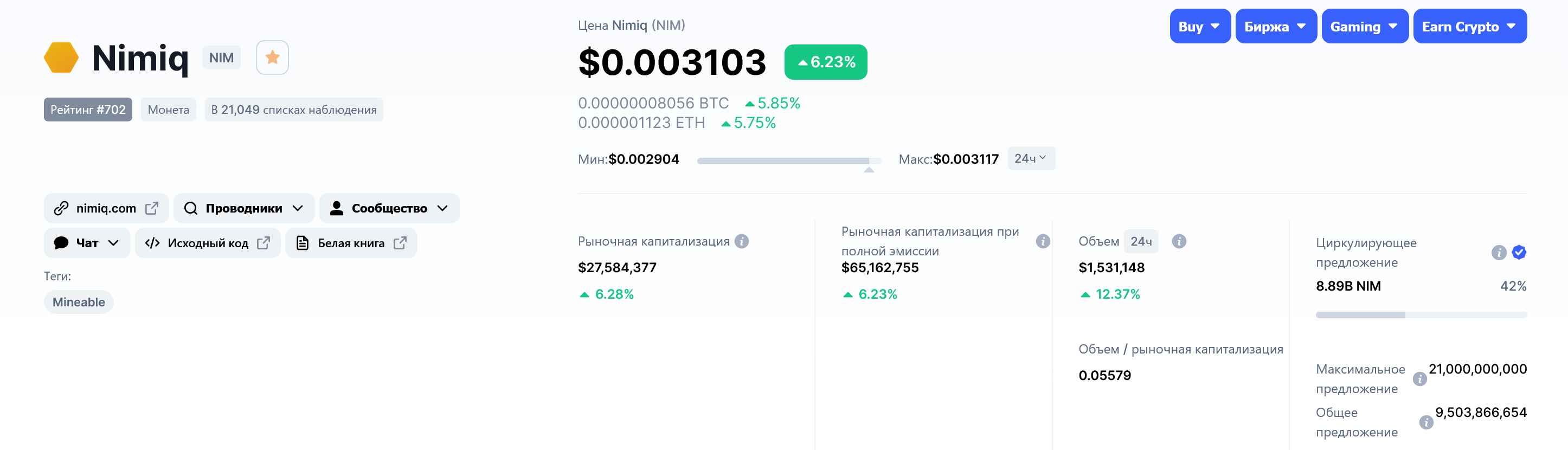 скорее artery копия нимика, нимик постарше на пару лет ну что могу сказать, - без впн не завелось даже, сайт уже в бане ркн (лол, почему?) - курс и маркеткап дико неадекватный, возможно потому что торгуется на одной бирже только - почему то уверен что разрабы из снг (хотя про тиму ни слова не нашел на сайте) - не предлагают сразу ничего на сайте, где создать кошелёк? что вообще куда как?!, просто дроч на технологию и заманушки для инвесторов a, ну да, нашел "скачать приложение" - но это уже немного другое, не в стиле простоты нимика уже, где из браузера выходить не надо - я так и не понял что они делают, то ли средство платежа, то ли мессенджер, то ли файловое хранилище (нет специализации)