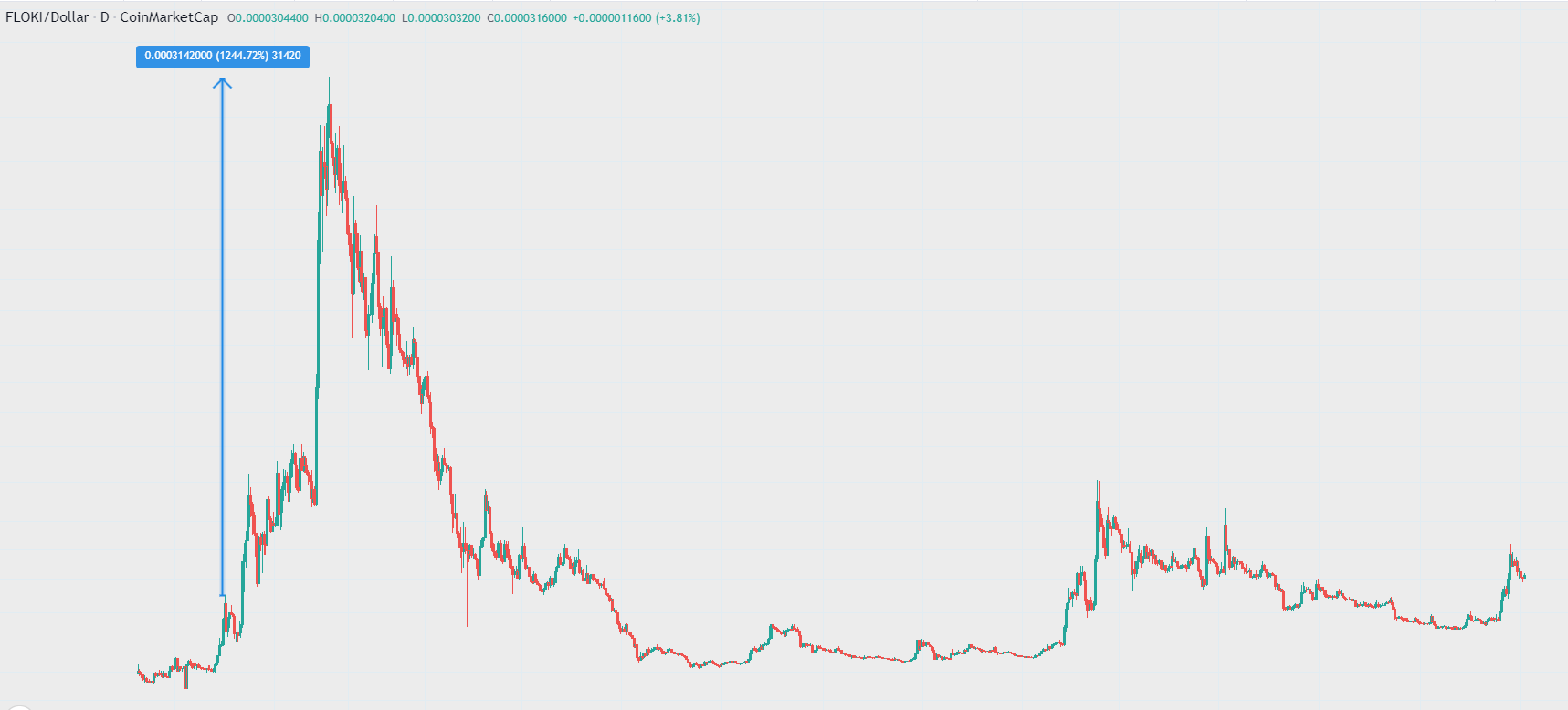 вообще что имеем: листинг везде кроме спота бинанса. малый объём начальной эмиссии ( 1 ярд + 60млн для мм + 3.8 млн/день от стэйкинга). общая капа 400 млн, текущая 40-50 млн. капитализация флоки 300-330 млн. вряд ли будут текущую раскачивать выше этой цифры. значит 4-6 иксов и дно не ниже 0.1 бакса. возможно неделю-две высадка бумажных ручек. при росте выше 0.15-0.18 рост флоки на хайпе выгоды стэйкинга.