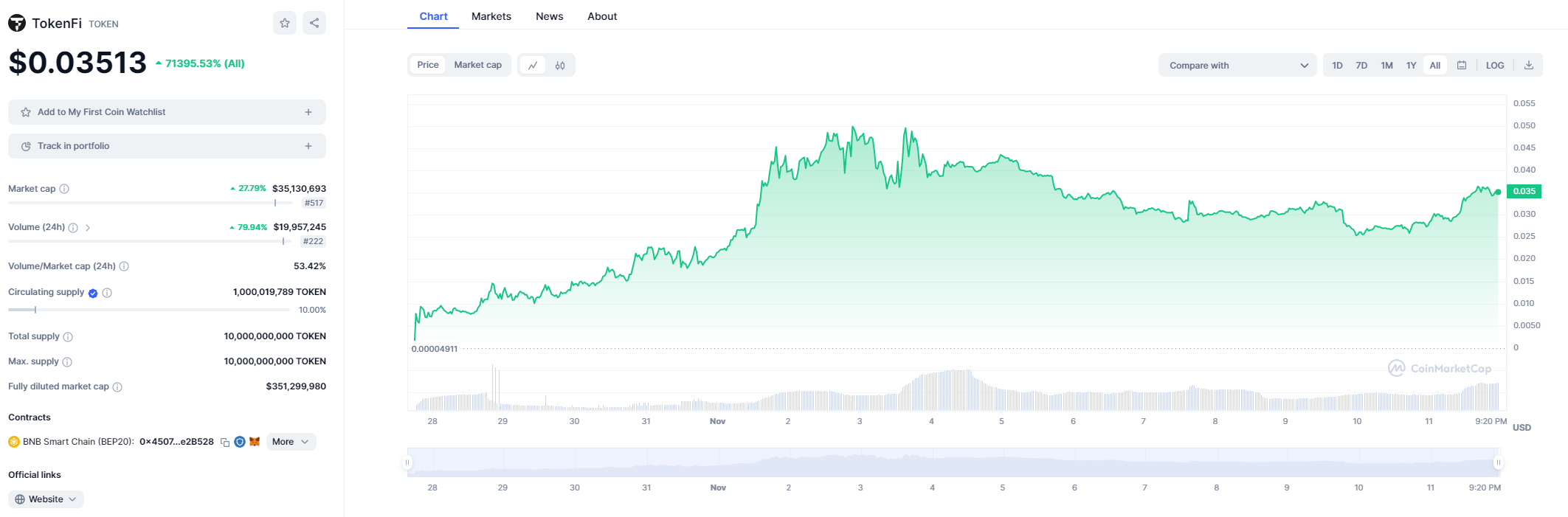 >>917267 через 3 дня тестнет запустят, что это - я сам хз. Я на небольшую сумму взял, на 200$. Думаю, команда будет накачивать tokenfi как накачивала floki, ебанёт ещё х50 и пойдут сливать.