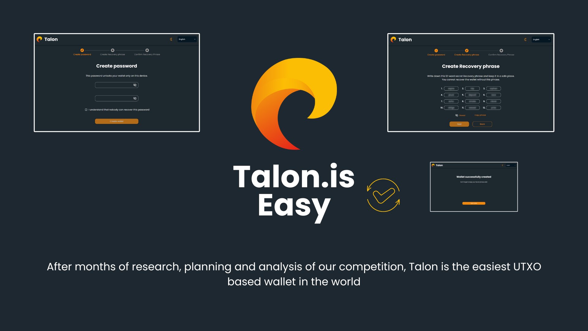 https://talon.is Легко – после нескольких месяцев исследований, планирования и анализа наших конкурентов, Talon стал самым простым кошельком на базе UTXO в мире#RTM #Raptoreum #Ассеты #UTXODeFi #BTC #BCH Оригинал твита — https://twitter.com/talonwallet/status/1735717912663478382