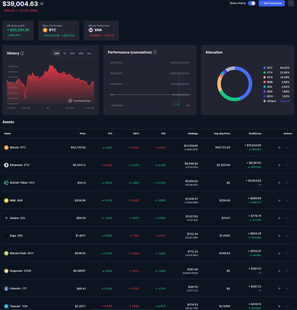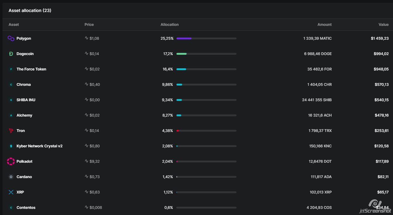 >>947684 >Ты хоть сверял бы среднюю цену покупки и профит, прежде чем сюда заливать ? Портфолио тред, заливать надо как есть. Средняя цена неверная почти во всех монетах стоит, из-за того что покупал крипту давно %%ещё с 2017 года по чуть-чуть" и уже понятия не имею за сколько. Для новых покупок конечно ввожу. Но для себя решил просто везти статистику о том сколько у меня монет, а не сколько прибыль.