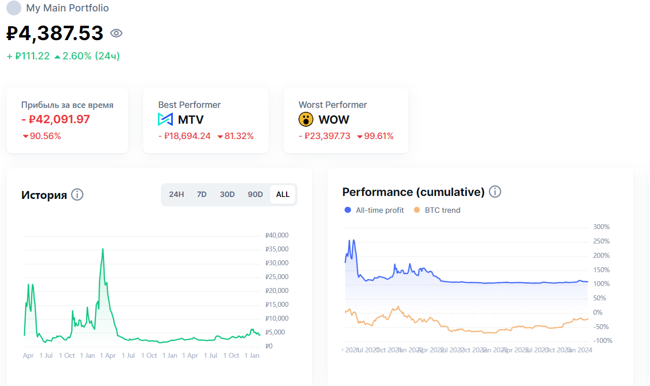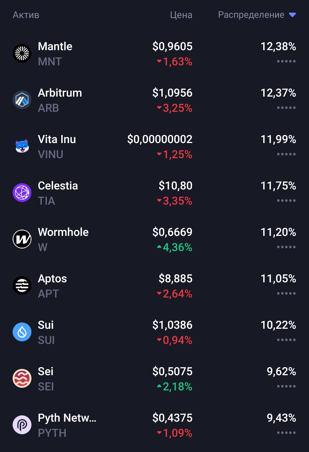 https://dropstab.com/p/x1yxl0i2wo Мой бомж портфель. Каждый день покупаю новую монету на 1 бакс с начала 2024 года. Фиксирую половину если цена достигает х2, х4, х8 и т.д. После 120ткупленных монет буду усреднять каждый день то что больше всего упало. С нового года буду увеличивать стоимость ежедневной покупки