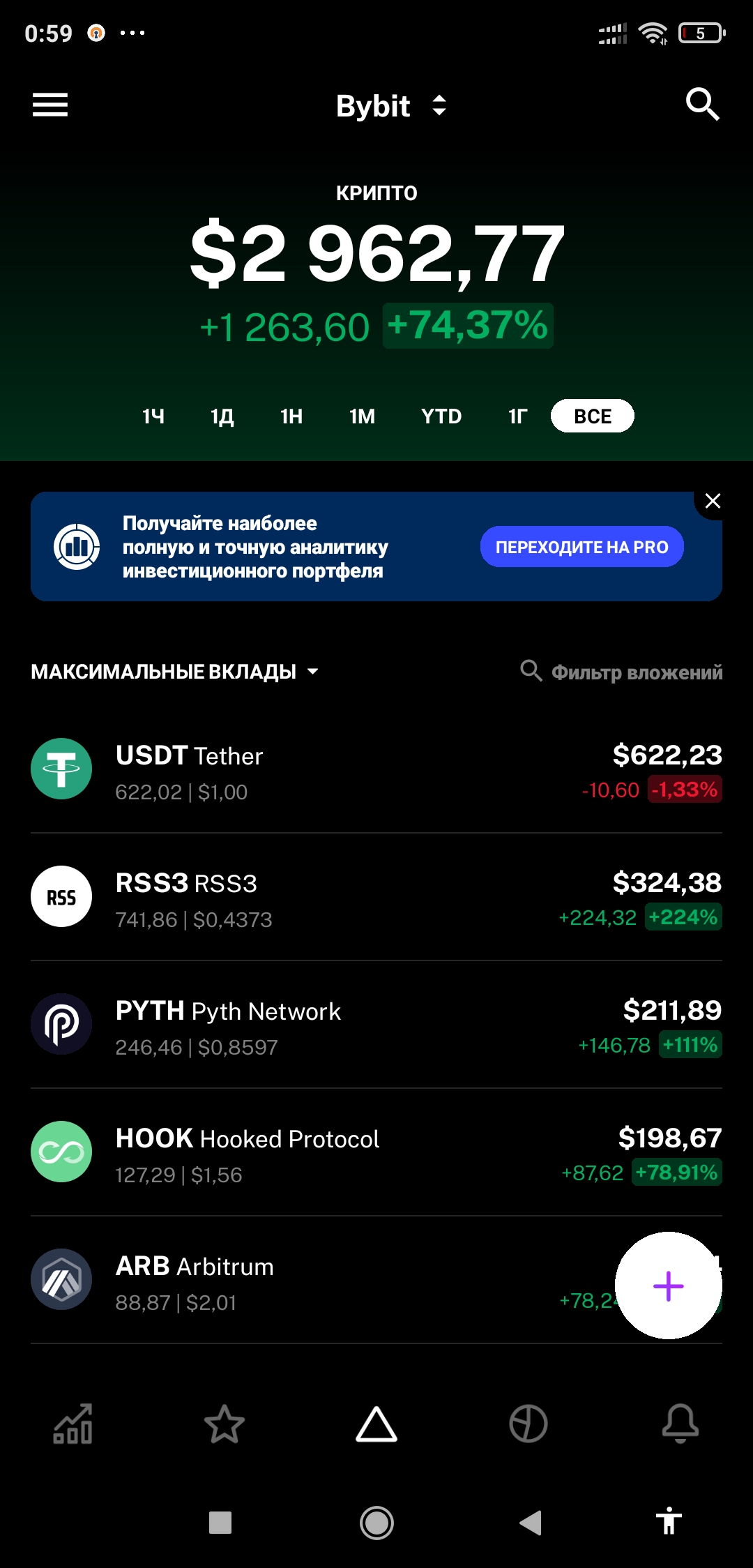 Портфель подрос из-за раннего вложения в биток, но с тех пор ничего интересного не было.
