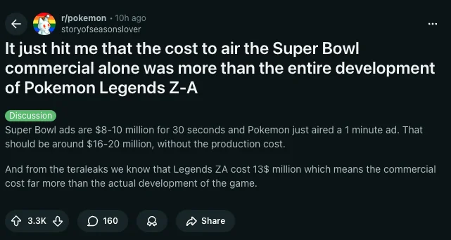 >>2584581 Пчел, эта игра не то что соси5 похоронит, а станет главным реальным конкурентом ГТА 6. Хотя у рокстар инсталлбаза гораздо больше сейчас. А сколько новеньких свичей будет куплено... Некст-ген Покемоны это просто ахуй.
