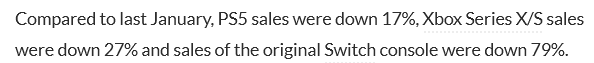 >>2585026 Во-первых, тебе уже миллион раз сказали, что цифры от VGChartz это фейк. Во-вторых, а почему ты решил принести цифры только за неделю, а не за месяц? Пиздец, как обычно в Европе дорисовывают ровно столько, чтобы отсос SOSY5 был не слишком глубоким
