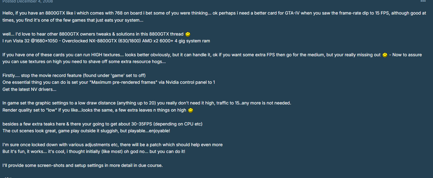 >>2571828 Чел я хорошо помню то время. Я тогда был школотроном да, но я помню как у всех гта4 тормозила на компе и жрали и давились в тех же 20 фпс с вылетами. Не было ни у кого опыта дигитал фаундри в то время