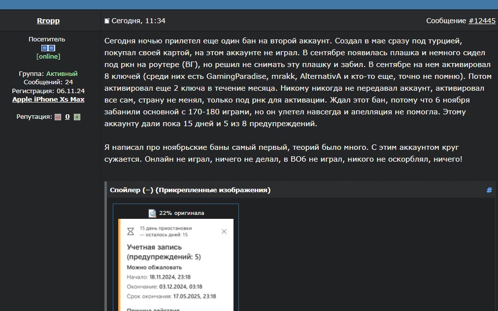 >>2460483 Бан на покупки, болван. Временный, 7-14 дней. А ещё есть длительный, который снимают сидением от 1 до 365 дней под айпи Турции. Но ты наврятли сеть с нужным айпи сможешь раздать. >>2460488 А что тебе мешало 25 лирную попробовать для начала. Не умеешь, не берись и нахуй отсюда съебись.