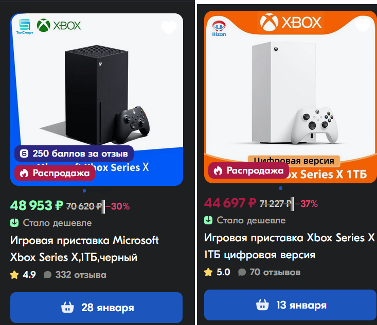 зашёл на мегамаркет, охуел от цен в 70к на сериес х, и никаких сбербаллов, как от сбер тв. зашёл на лохито и охуел от цен в 50к. а где те самые "хбоксы за копейки"? последний год держал в голове что продам свой хуанчик х за 20к, докину столько же и возьму новый сериес х. типо поезд ушёл? и все научились настраивать днс?