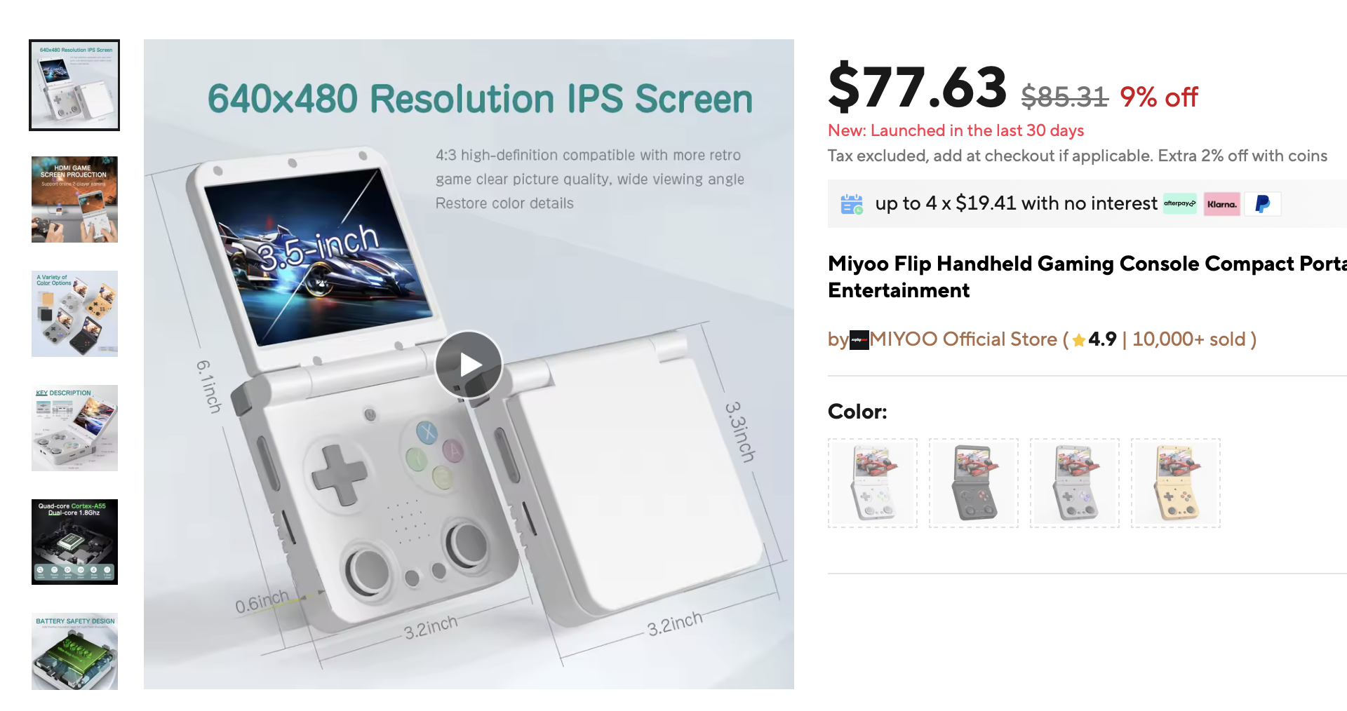 > Today December 30th at 4pm Beijing time, the Miyoo Flip will go on sale in all colors. We hope that this first batch will be enough to satisfy the demand. We will also release batches faster than in previous occasions.Happy New Year 🎅