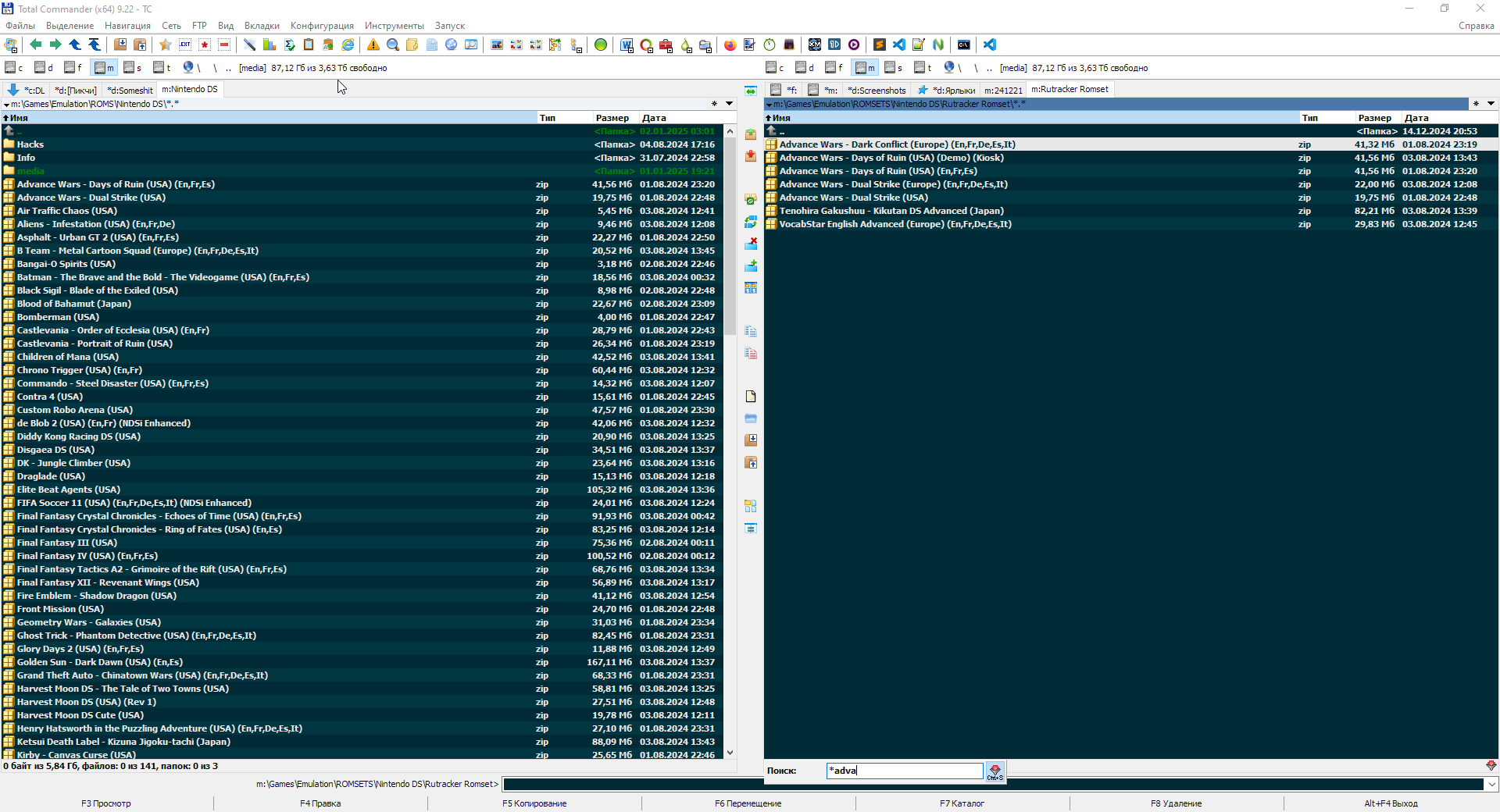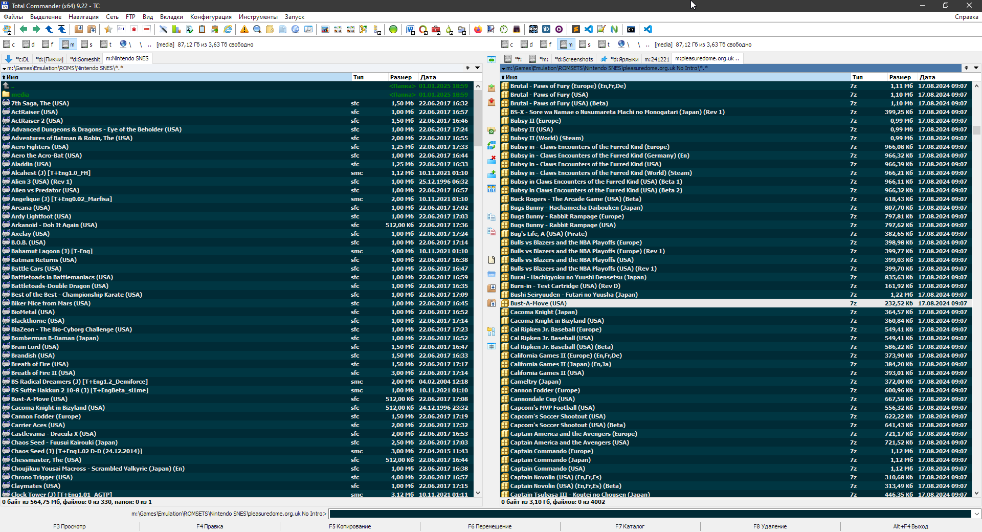 Далее уже из этого ромсета через какой-нибудь Total Commander (им удобно распаковывать папка->папка и есть быстрый поиск) "наполняешь" себе активный каталог ромов на платформу. В первую очередь берёшь ромы с пометками (USA) (U). Если нет (USA), то гуглишь название игры на википедии и ищешь эту же игру по USA-шному названию (в Европе и Сша одна игра могла издаваться под разными именами), если и такого нет то берёшь (Europe) ром. Иногда есть только (Japan) версии - в этом случае идёшь на emu-land.net и ищешь хак [T-Eng] [T+Eng].