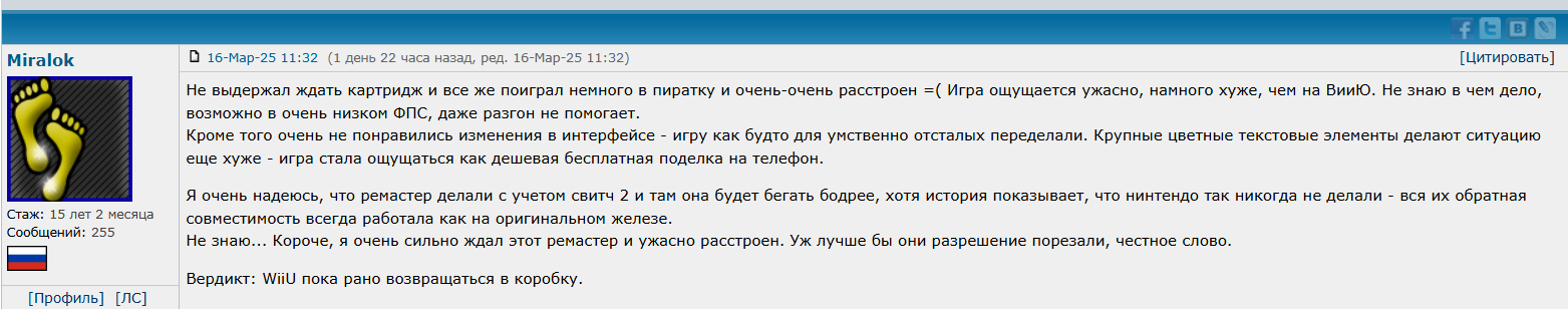 >>2481239 Угомонись, шиз. Твой тред, ВЕЛИКОЙ игры находится в другом месте. Там заодно можешь обсудить ремастер с вии ю, который даже 30 фпс не вытягивает.