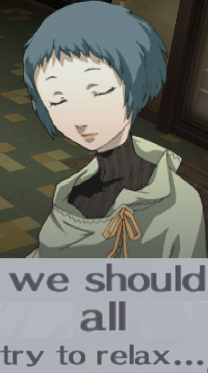 Эх, вот бы в Персону 6 завезли типы личности для демонов… и побольше добавили демонов там разных в целом… и вернули акву и землю в качестве скиллов…. и шоб механику магнетита добавили… и вернули [Ухмылку]… и сделали две враждующие группировки персона-юзеров под хаос и порядок которым лицо надо ломать в поздней стадии игры… и впихнули в сюжет злую корпорацию Кириждо с Милфцурой во главе…. и подтянули механику времени в игре конечно же… и сделали сюжетные ветки… и подкрутили бы сложность… и шоб как в Райдо можно было в обычном мире демонов с собой таскать и они на что-то влияли бы… можно ещё миссии на лояльность добавить для сопартийцев… и побольше контента для романсов, ну да было б круто конечно… можно телепорты в данжоны поставить, ну минусы нужны же ну вот… и сделать в данжонах механики разные там, вот чтоб интересно было, а не пазлы эти только… а ну и для протага сделать в качестве попечителя депрессивную офисную леди алкоголичку (романсибельную)… и чтоб была подруга детства (томбой) в качестве комик-релифа на маджишан аркане…. и ещё можно к написанию ОСТа подключить Лотус Джуса и Мегуро... можно что-то придумать с самими сошиал линками более интерактивными сделать там что ли…? и шоб игра стоила не дороже 70-ти Американских песо… да было бы неплохо… а ну и конечно чтоб ререлиз с буквой R не делали для игры а если и сделали то и не впихивали ж-протага или ещё какую хабалку в сюжет, а развивали уже имеющихся персонажей… эх… надо было не пить, всякий бред в голову приходит