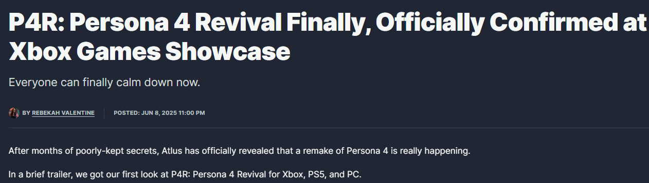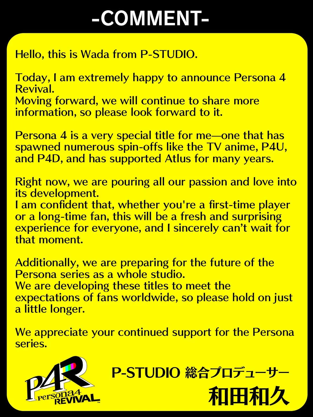 - Persona 5: The Phantom X релизится на западе в этом или следующем году; - Persona 4 римейк в разработке.