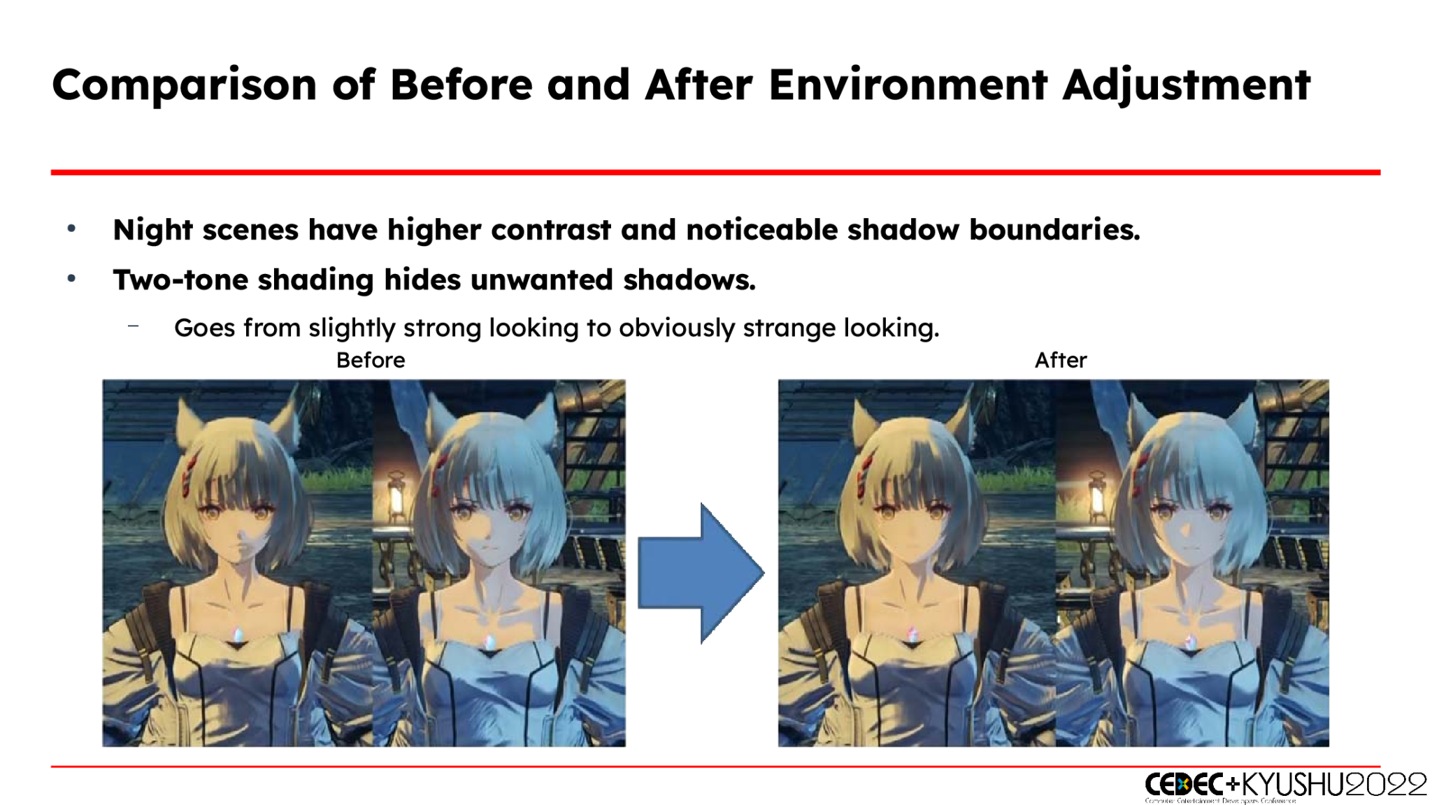 >Monolith Soft has been looking into Houdini's procedural technology to cope with the increasing volume of assets required by their games. A decade ago they could create 1,000 to 2,000 assets by hand but today the number has increased to the 100,000 level, and manual work cannot keep up. >They replaced the placement process with a procedural one so that development resources could focus on the original game creation. They were able to do that for the first time in Xenoblade Chronicles 3 with a partial asset placement system. >Procedural technology has significantly reduced the amount of work required to place small assets by first automatically generating up to 70% procedurally and then adjusting only the last 30% by hand. They've been able to allocate more man-hours to gameplay and visual aspects thanks to that. >Previously, a programmer often had to be tied up with a designer to help but now, designers can make adjustments directly themselves while programmers are free to work on other things. >Monolith Soft is currently researching and developing an automatic streetscape generation tool where a designer can place grey boxes and buildings are automatically generated by pressing a button. Houses are constructed by arranging modules, and the appropriate number of floors is automatically calculated from the height of each module and the height of the boxes, and the modules are then arranged. >They have a tool to create deformations in terrains without affecting the level design. It can lift the cliff edge of a flat ground mesh created by an artist to make it connect more naturally, or add noise-like undulations. The height of the area around the assets placed by the artist is designed not to change.