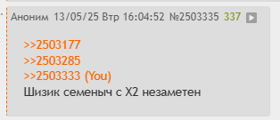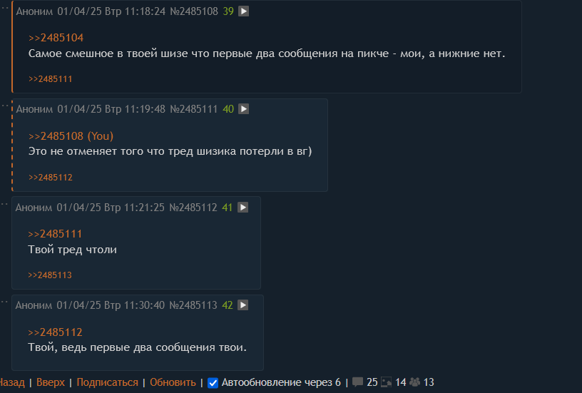 >>2485126 тут два варианта - игнорить шизика бегающего по всей доске - чтобы его уже самого заебало второе - постоянно отвечать ему и продолжать срачи ниочем.