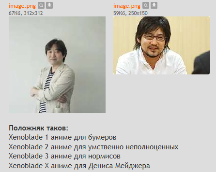 Положняк таков: Xenoblade 1 аниме для бумеров Xenoblade 2 аниме для умственно неполноценных Xenoblade 3 аниме для нормисов Xenoblade X аниме для Дениса Мейджера