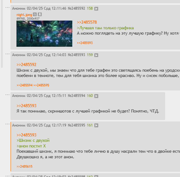 >>2485197 Да это уже наверное моя шиза. Я пытался понять ещё пол года назад зачем он скатывает в говно жрпг тред, но не добившись ответа ливнул оттуда. Вернулся недавно, смотрю - этот же шиз срёт в тред про три дома. И вот эти попытки понять нахуя он просто публично срёт в куче тредов - для меня не ясна, а ответа нет. Вернее он есть - вниманиеблядство, но это как-то слишком по детски.
