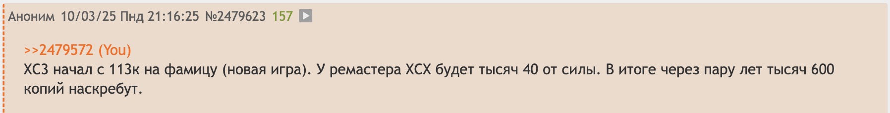 >>2492445 Чел, можешь не надрывать свой клюв. Все уже сделали вывод про продажи хб 3. Твои потуги обернуть зраду перемогой разбились о простейшую просьбу показать пруф 80% продаж в цифре. Можешь кукарекать дальше конечно, но смысла в этом нет. Твою петушиную тряску я заскринил потому что получилось действительно неожиданно и смешно.