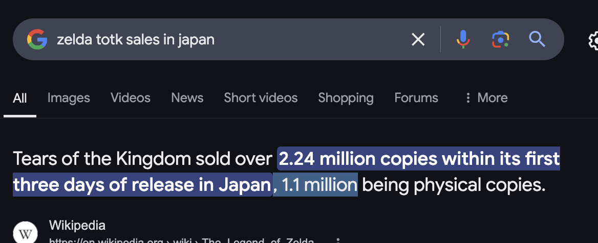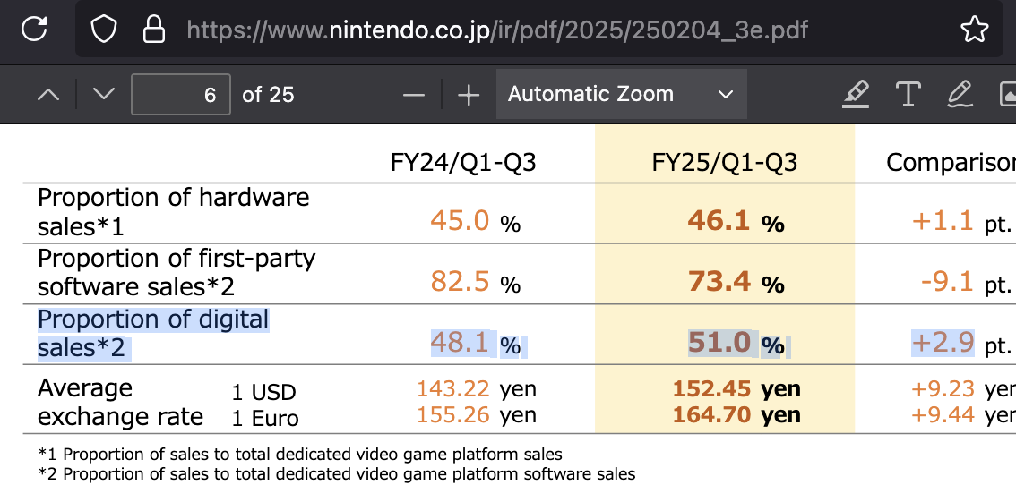 >>2492433 >80% продаж в Японии были сделаны в цифре, так как есть возможность игру купить на 50% дешевле благодаря ваучерам. Бред. Зельду Тотк тоже можно было по ваучерам купить. Это ни на что не влияет, там 50/50 физика и цифра.