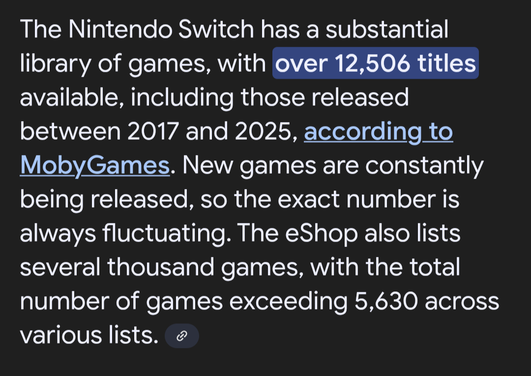 >>2506216 Я тебе говорю про официальные данные от самой нинтендо, которая не включает в список игр калькуляторы, будильники, утилиты по переносу сохранений и т.д. А то, что там пукнул какой-то дурачок в какой-то рандомной статейке на википедии, где дезинформации столько, что хоть ковшом ешь, вменяемых людей не ебет.